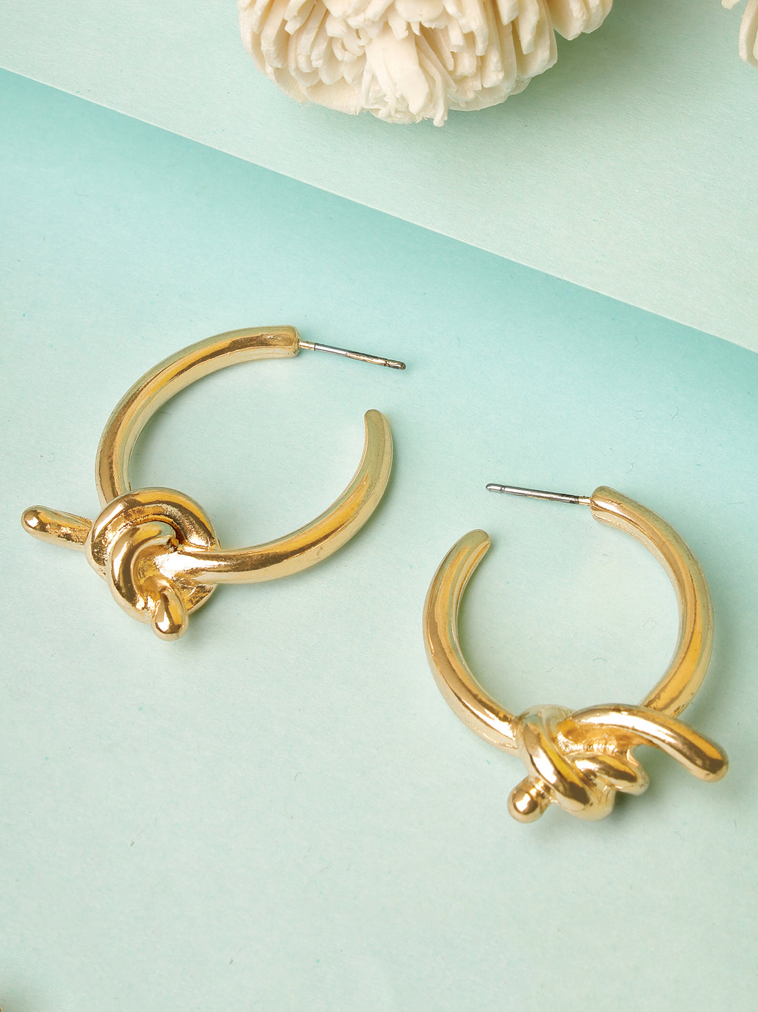 Bohey by KARATCART Gold Plated Love Knot Design Contemprory Half Hoop Earrings for Women