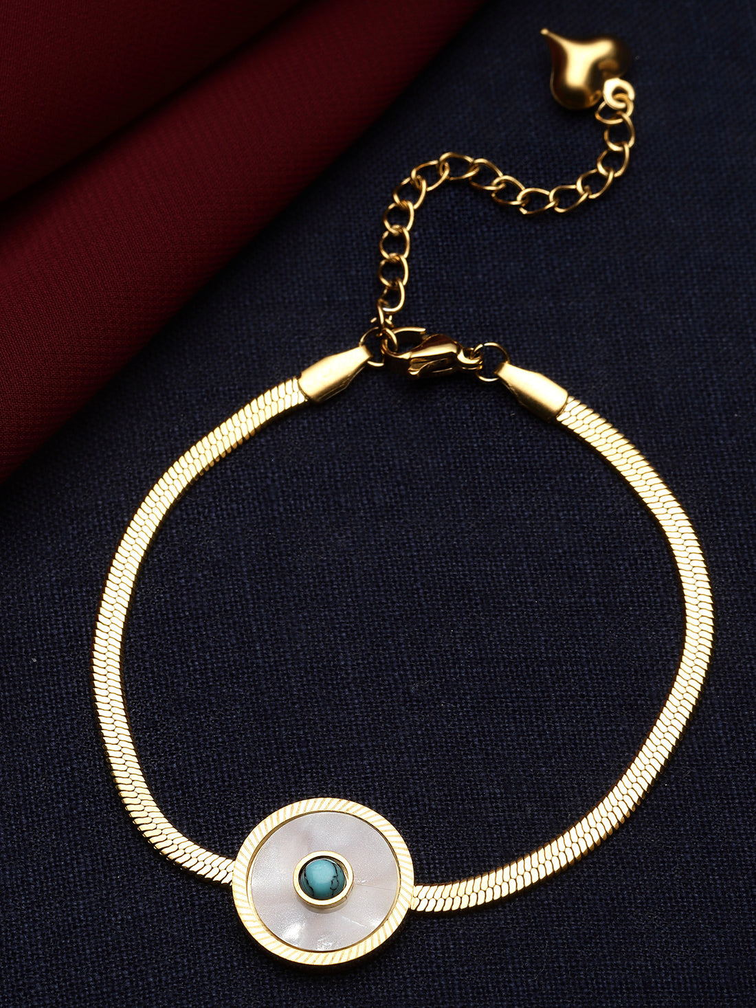 Bohey by KARATCART Gold Plated Mother of Pearl Evil Eye Adjustable Bracelet for Women