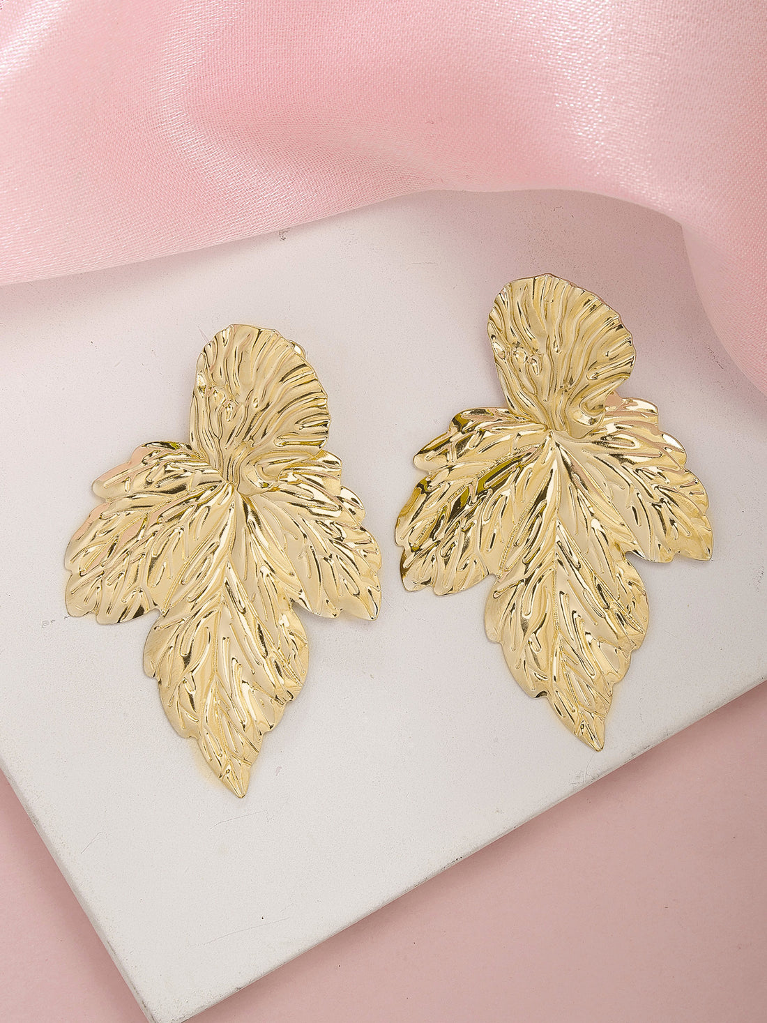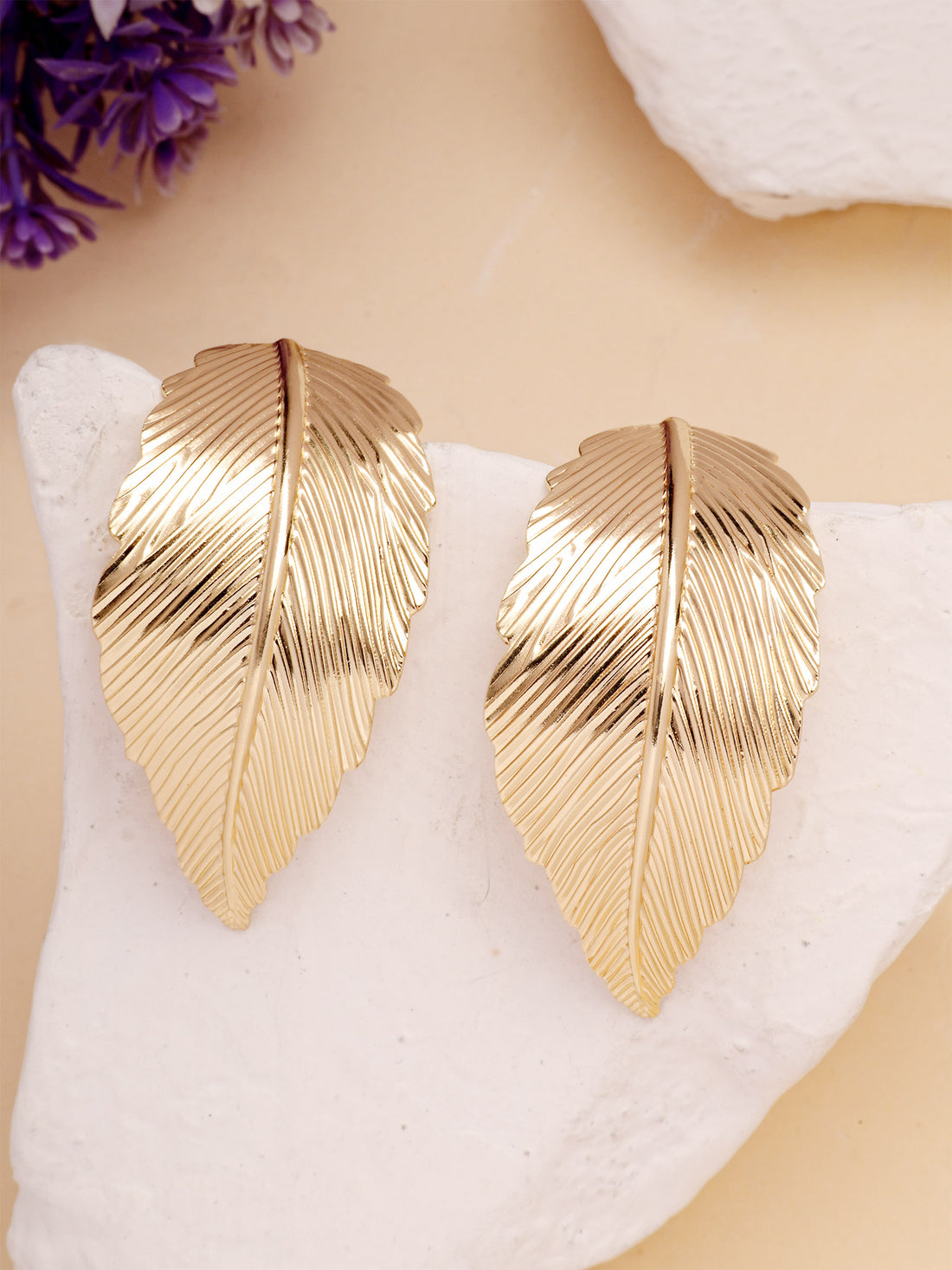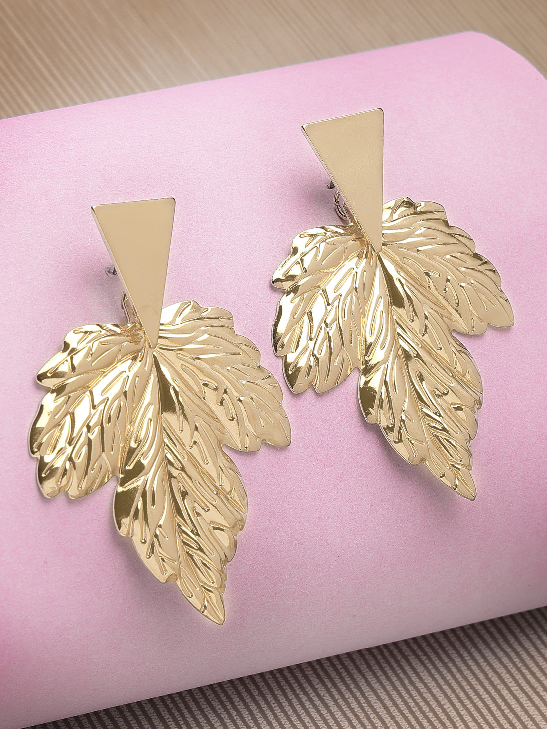 Bohey by KARATCART Gold Plated Leaf Design Drop Earrings for Women
