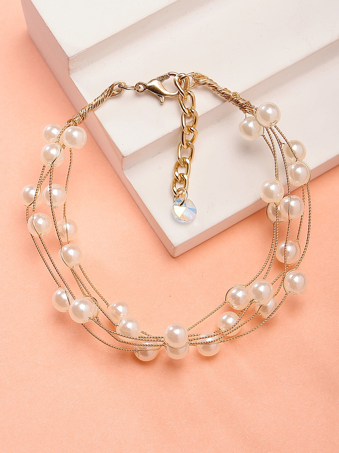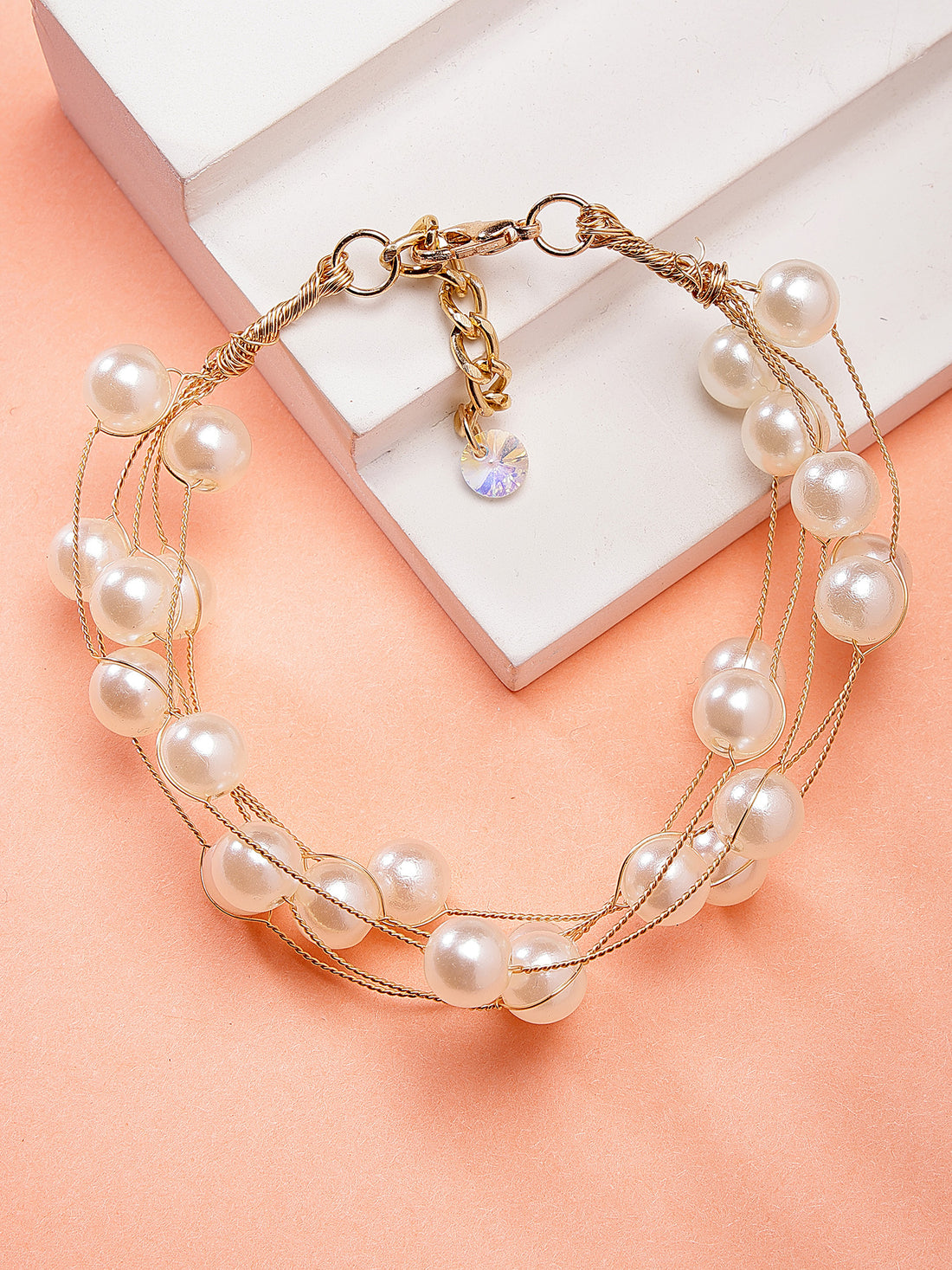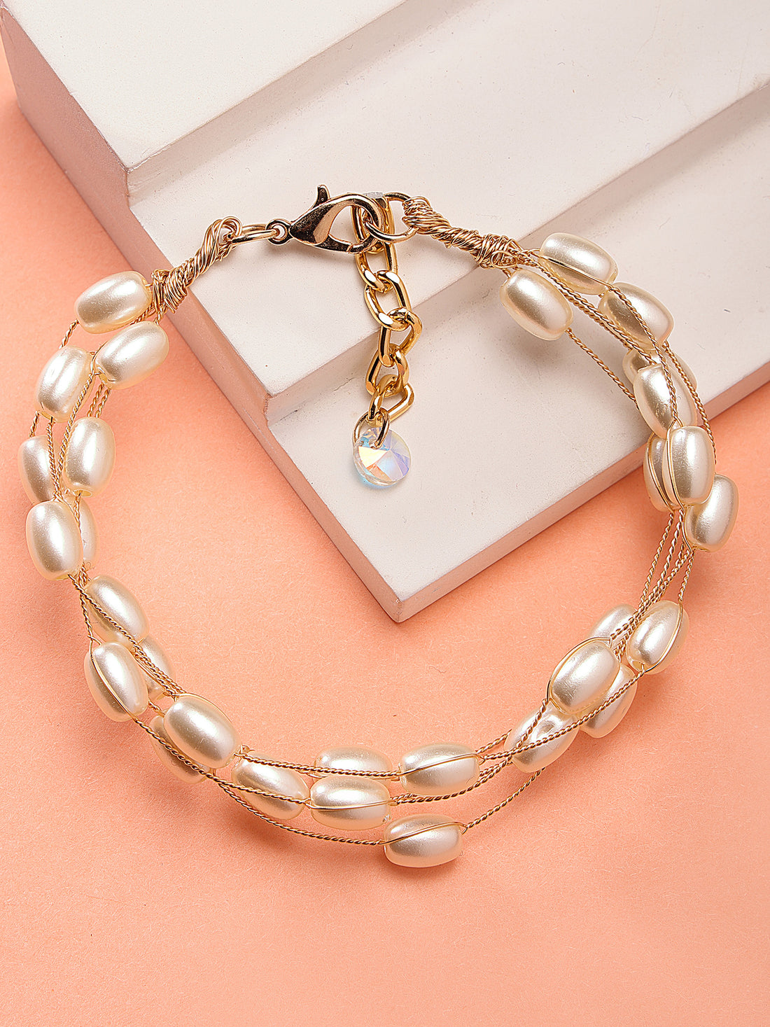 Bohey by KARATCART Gold Plated Multilayer Baroque Pearl Chain Bracelet for Women