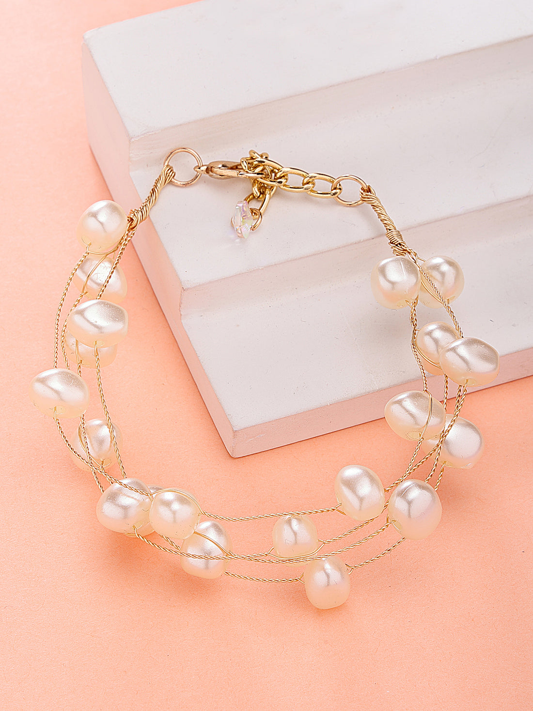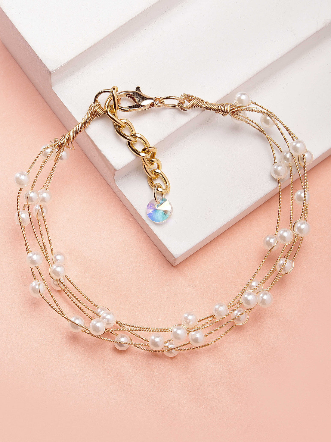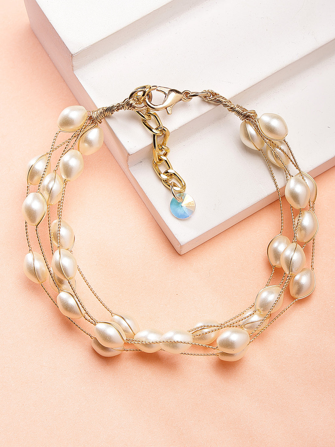 Bohey by KARATCART Gold Plated Multilayer Baroque Pearl Chain Bracelet for Women