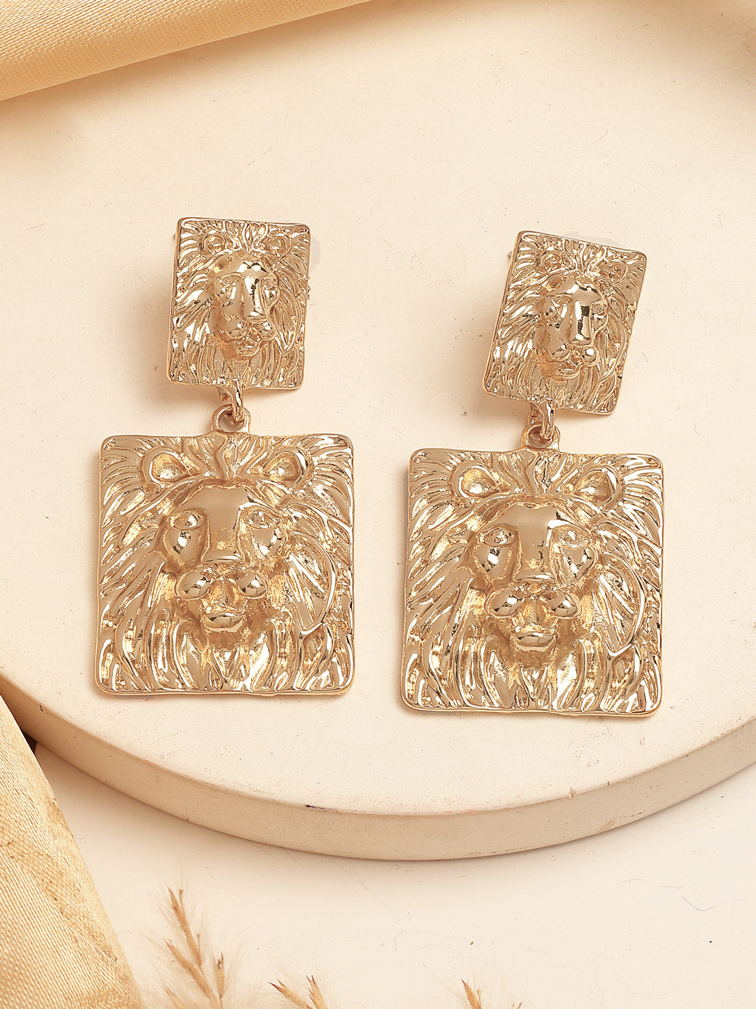 Bohey by KARATCART Gold Plated Lion Shape Drop Earrings for Women