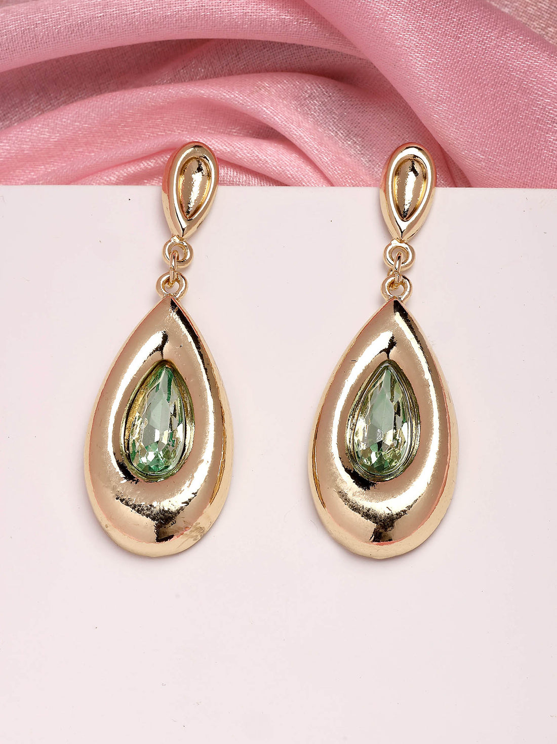 Bohey by KARATCART Gold Plated Lime Green Rhinestone Drop Earrings for Women