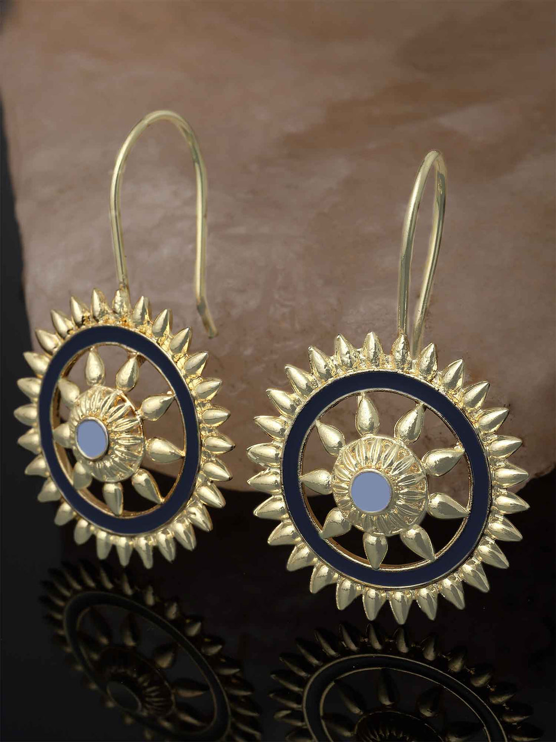 Karatcart Gold Plated Blue Meena Sun Shape Drop Earring for Women