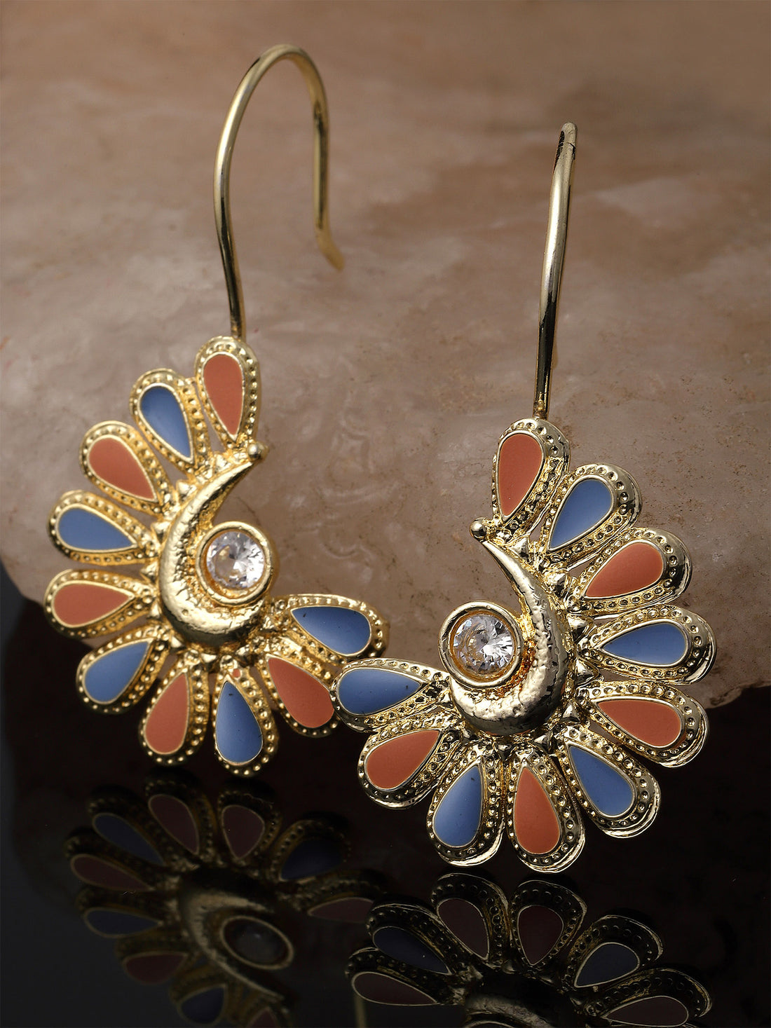Karatcart Gold Plated Blue Meena Peacock Design Round Drop Earring for Women