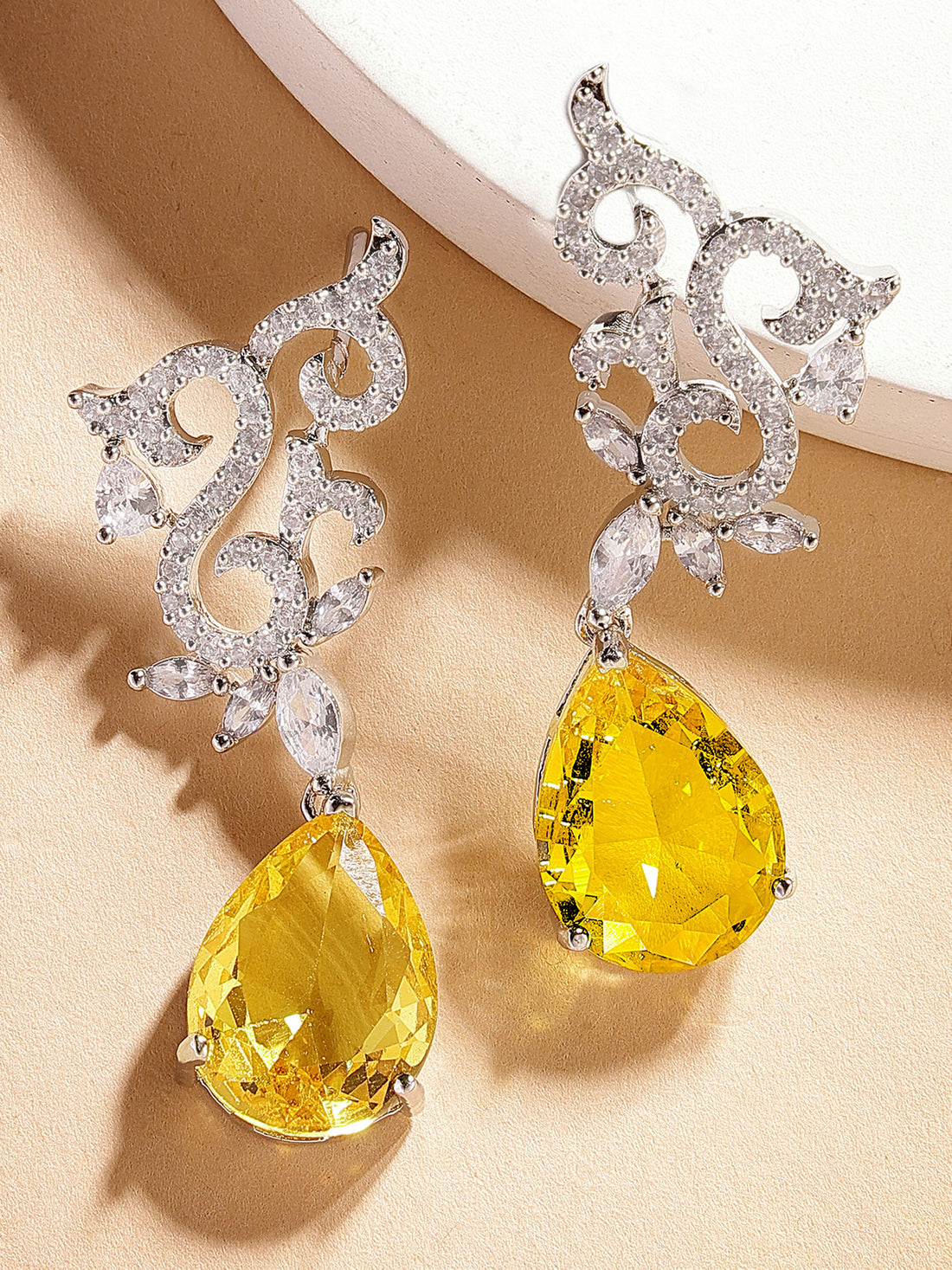 Karatcart Silver Plated Embellished Cubic Zirconia Drop Shape Earrings for Women