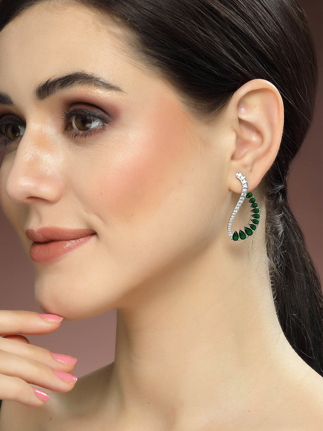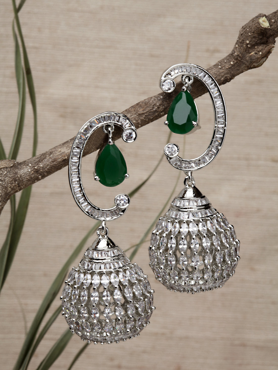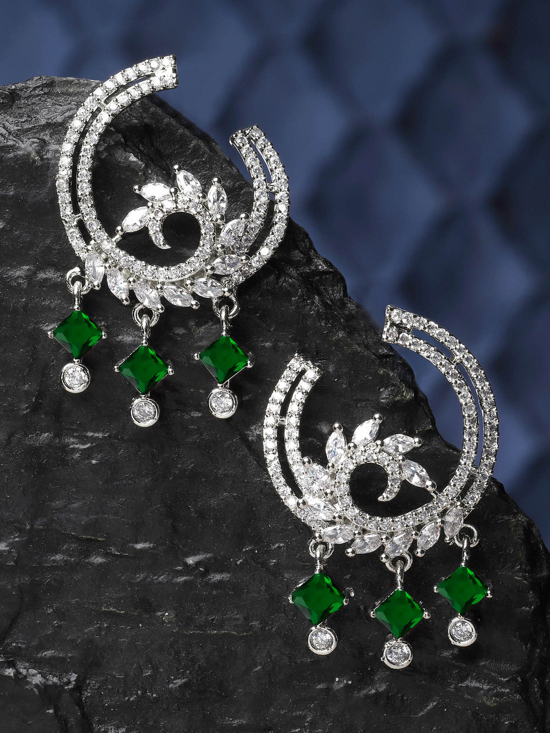 Karatcart Silver Plated Green Cubic Zirconia Drop Earrings for Women