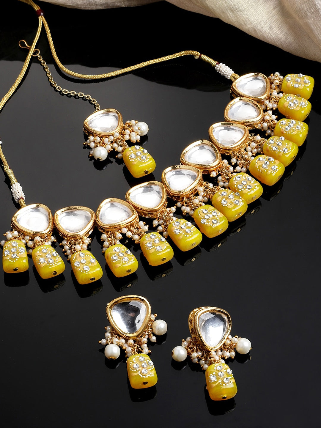 Gold-Plated Light Yellow Tumble And Polki Kundan Studded Jewellery Set