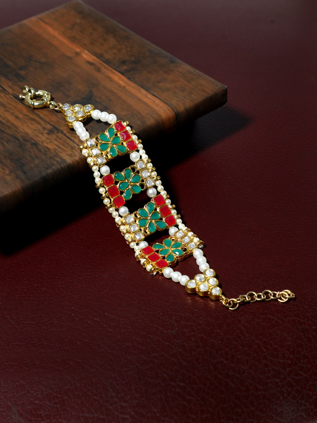 Ruby and Green Kundan Studded Handcrafted Bracelet