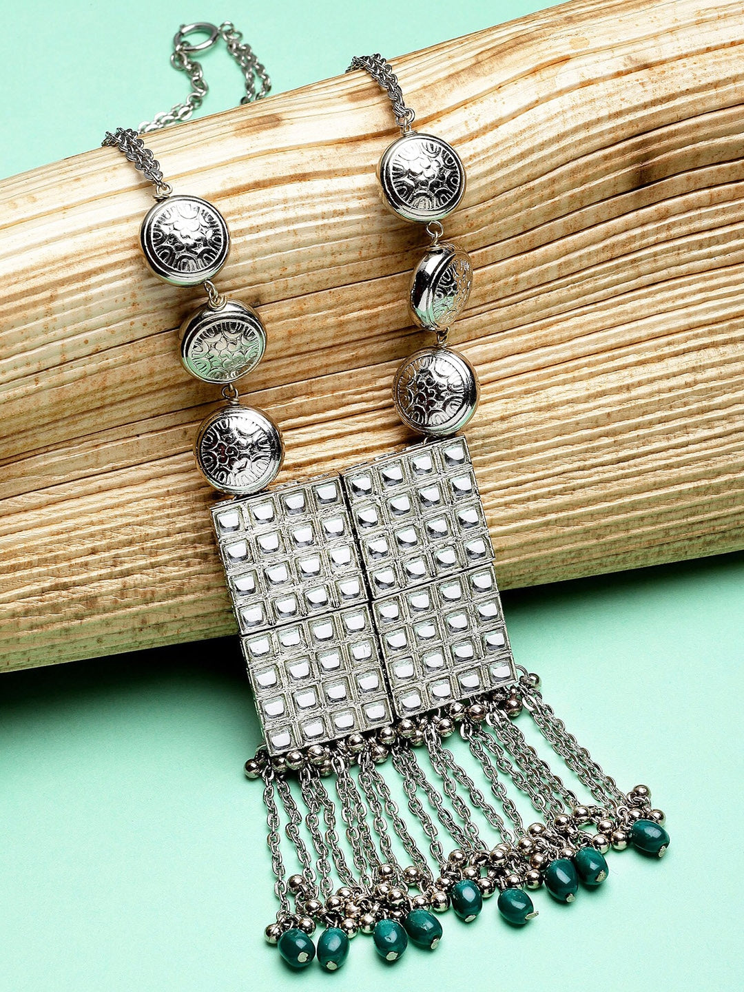 Silver-Toned & Green Silver-Plated Oxidised Necklace