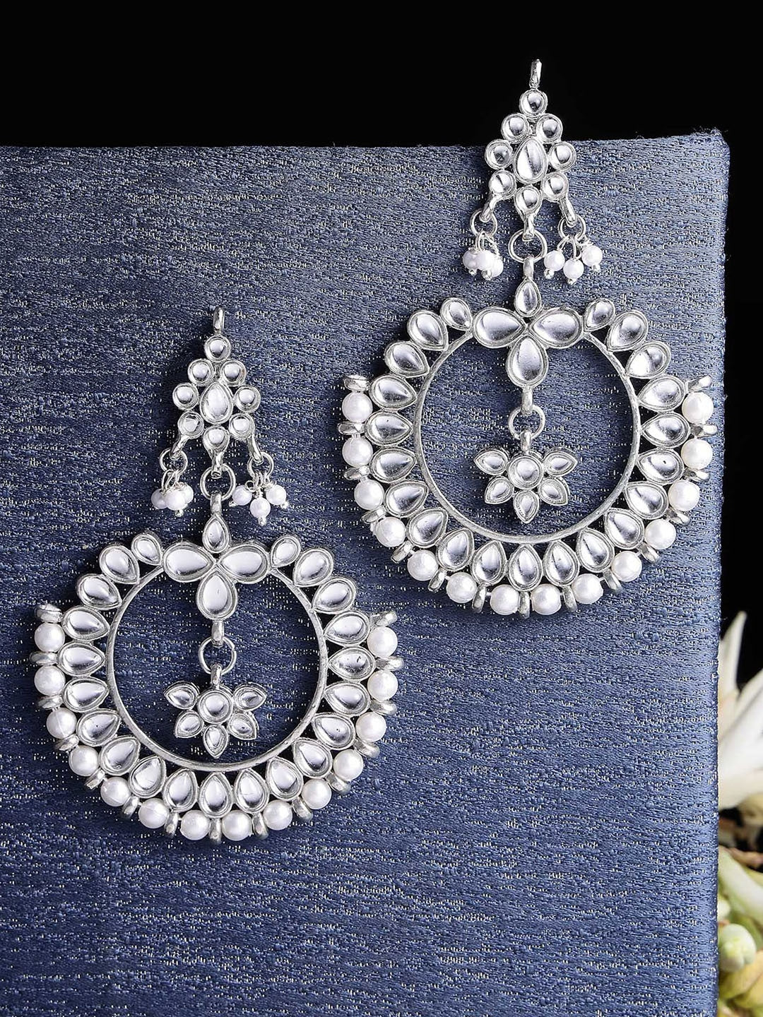 PRODUCT DETAILS Silver-toned classic chandbalis, silver-plated, has kundanSecured with a post and backSize & FitLength:Material...