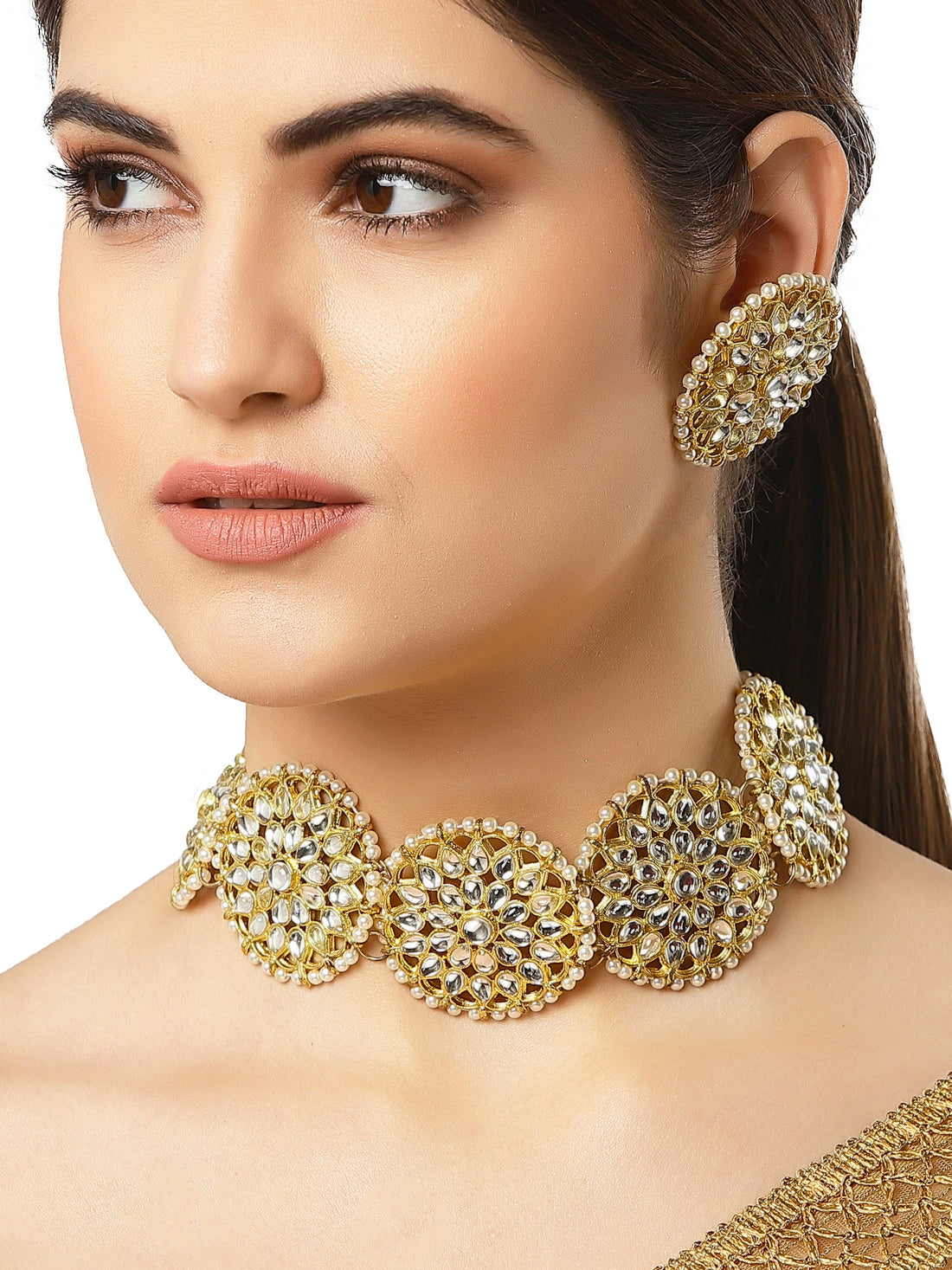 Traditional Gold Plated Kundan Floral Choker Necklace Set