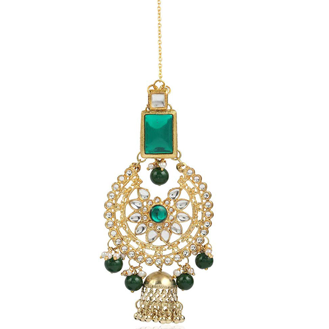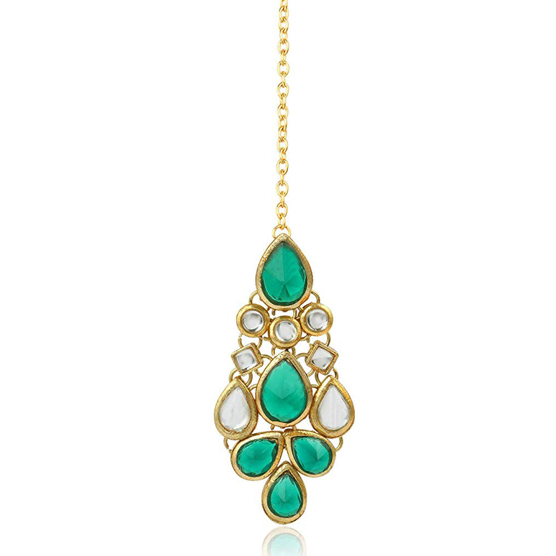 Traditional Gold Plated Green Stone Kundan Maangtikka For Women