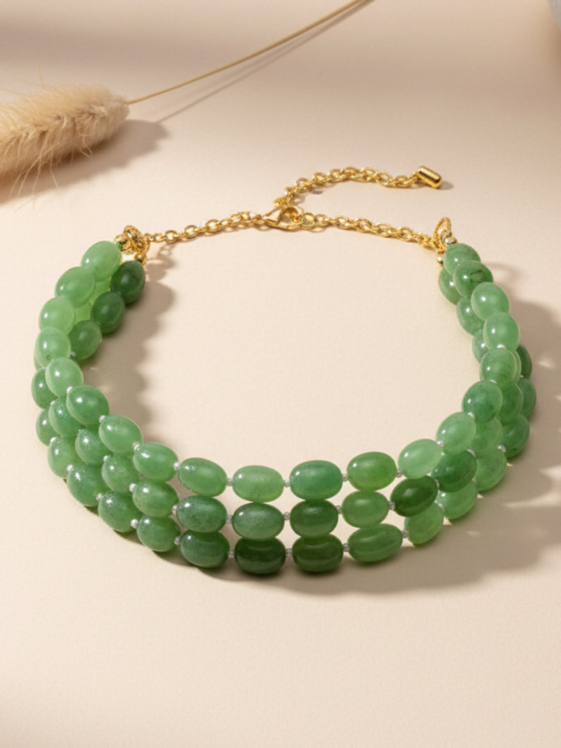 Green Tumble Stone Studded Beaded Choker Necklace for Women
