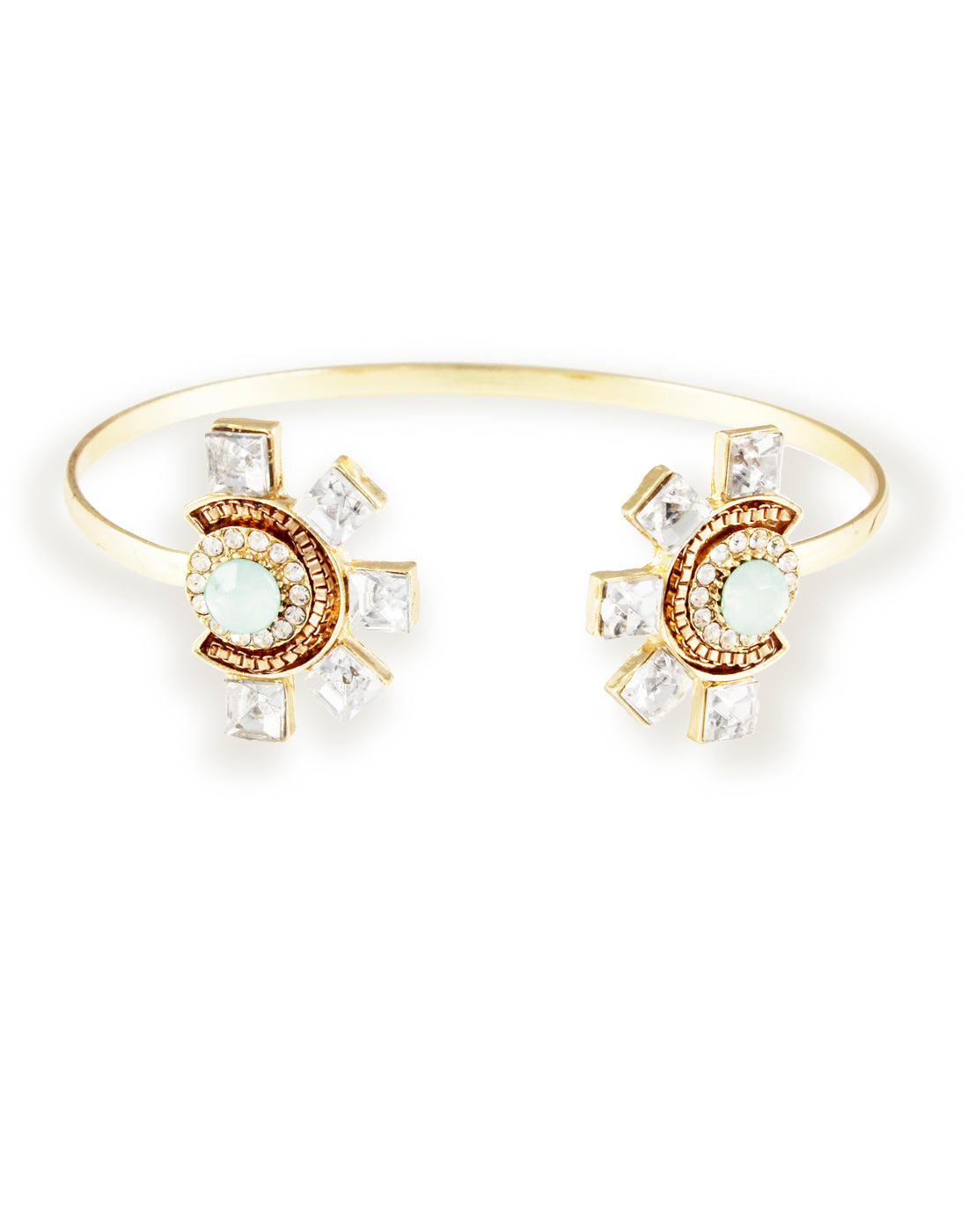 Crystal Floweret Charm Gold Metal Adjustable Bracelet. Colour:- Gold. Type: Cuff. Material :- Alloy metal...