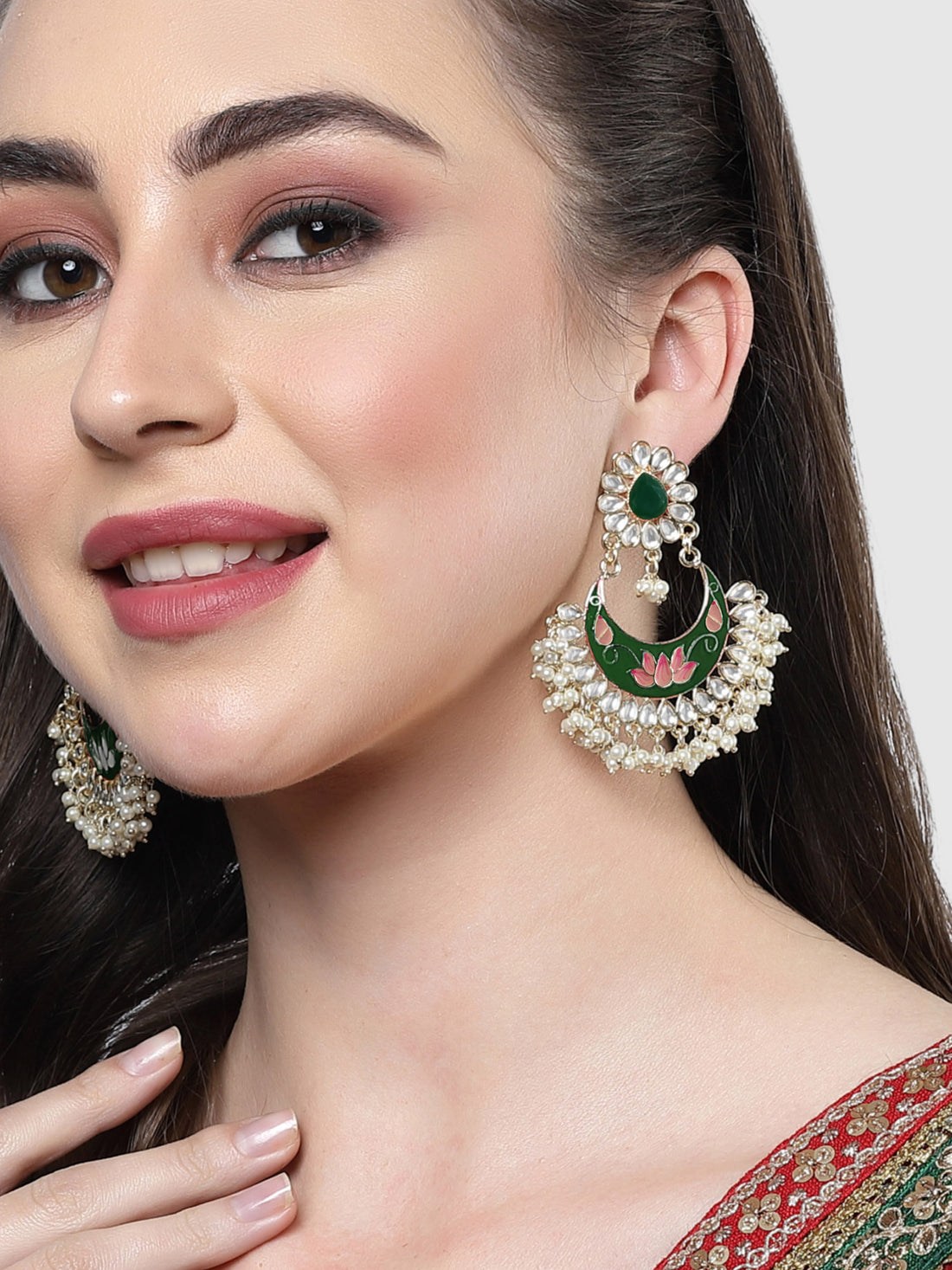 Karatcart Gold Plated Kundan Studded Green Meena and Tumble Dangler Earrings for Women