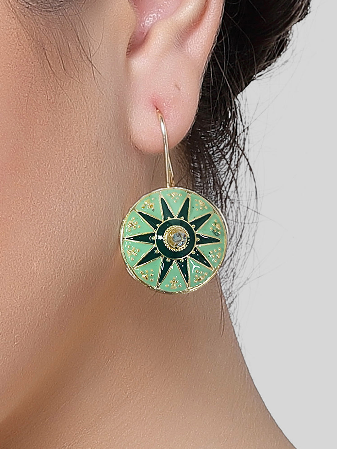 Karatcart Gold Plated Star Design Green Meena Drop Earrings for Women