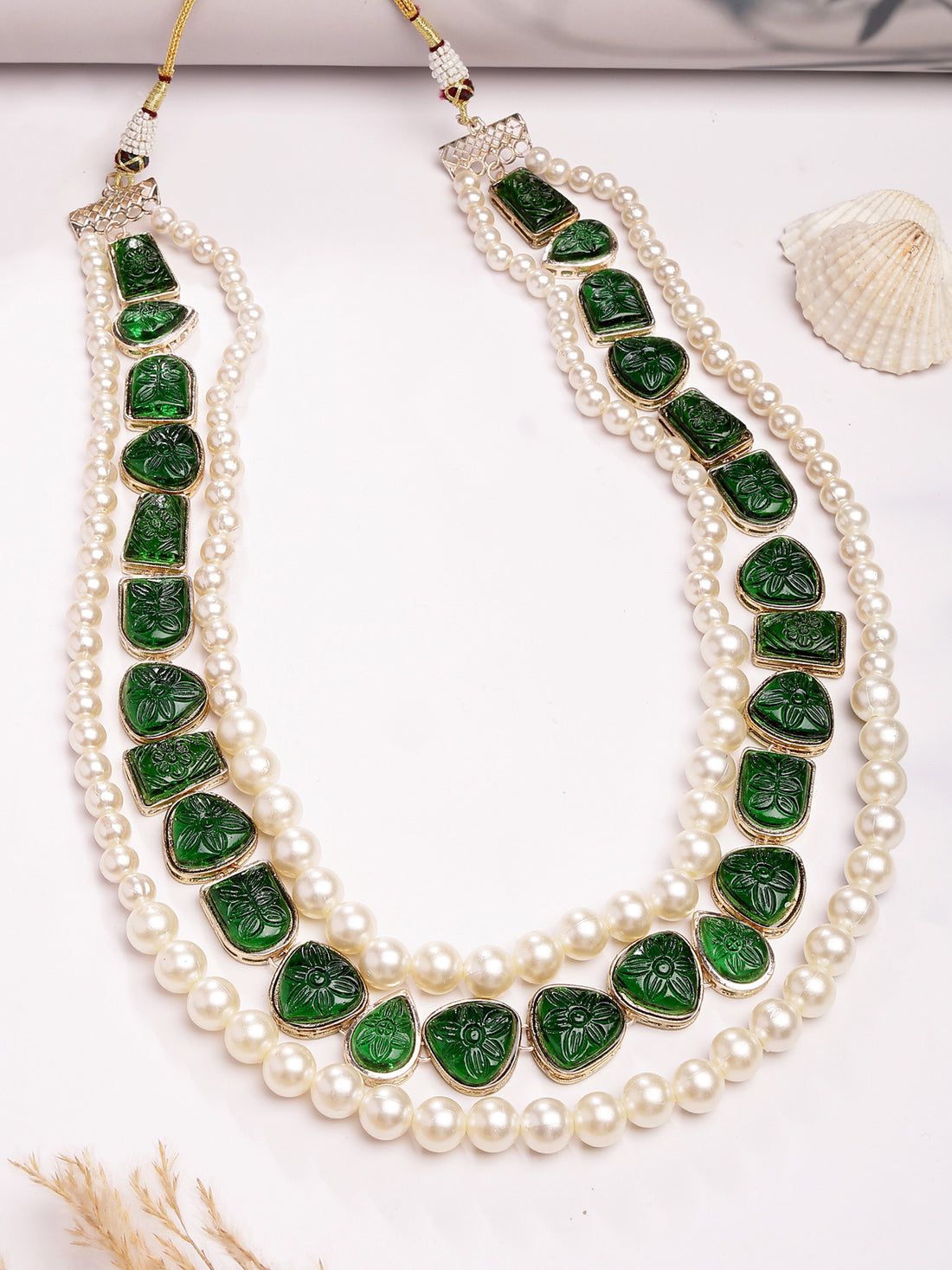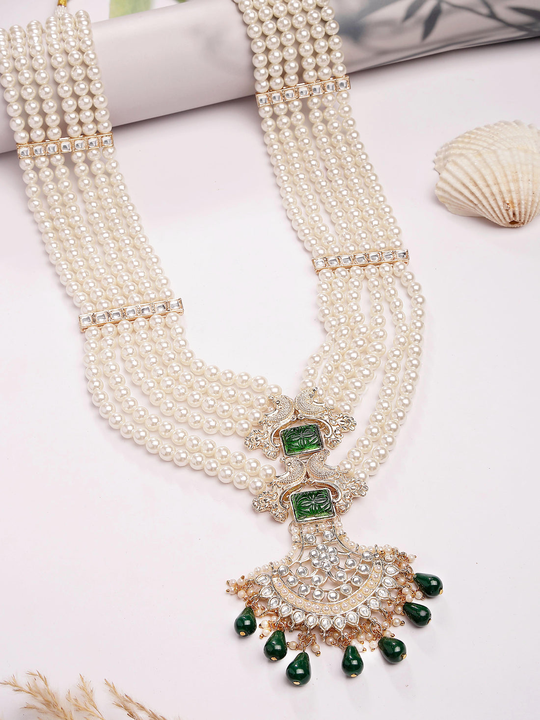 Karatcart Luxurious Green Carved Stone Pearl Maharaja Haar for Men
