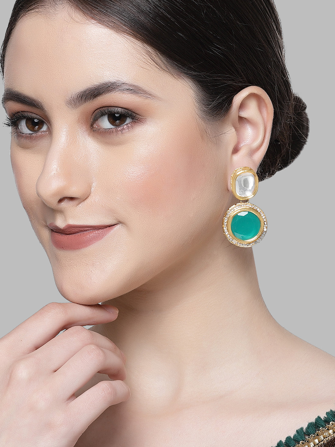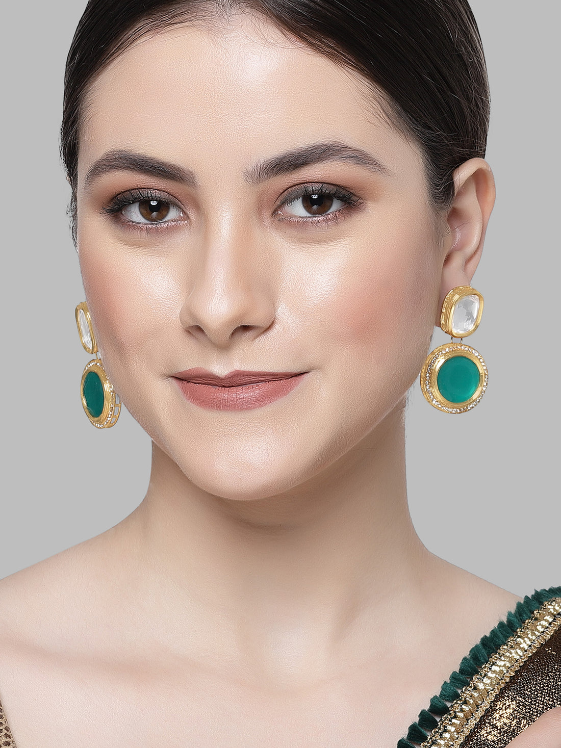 Karatcart Gold Plated Green Round Polki Kundan Drop Earring for Women