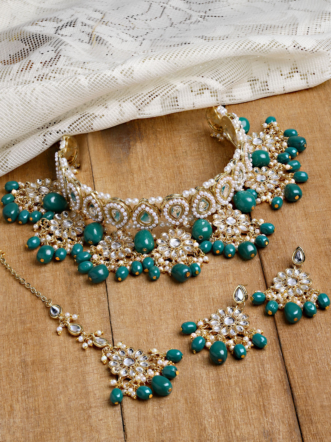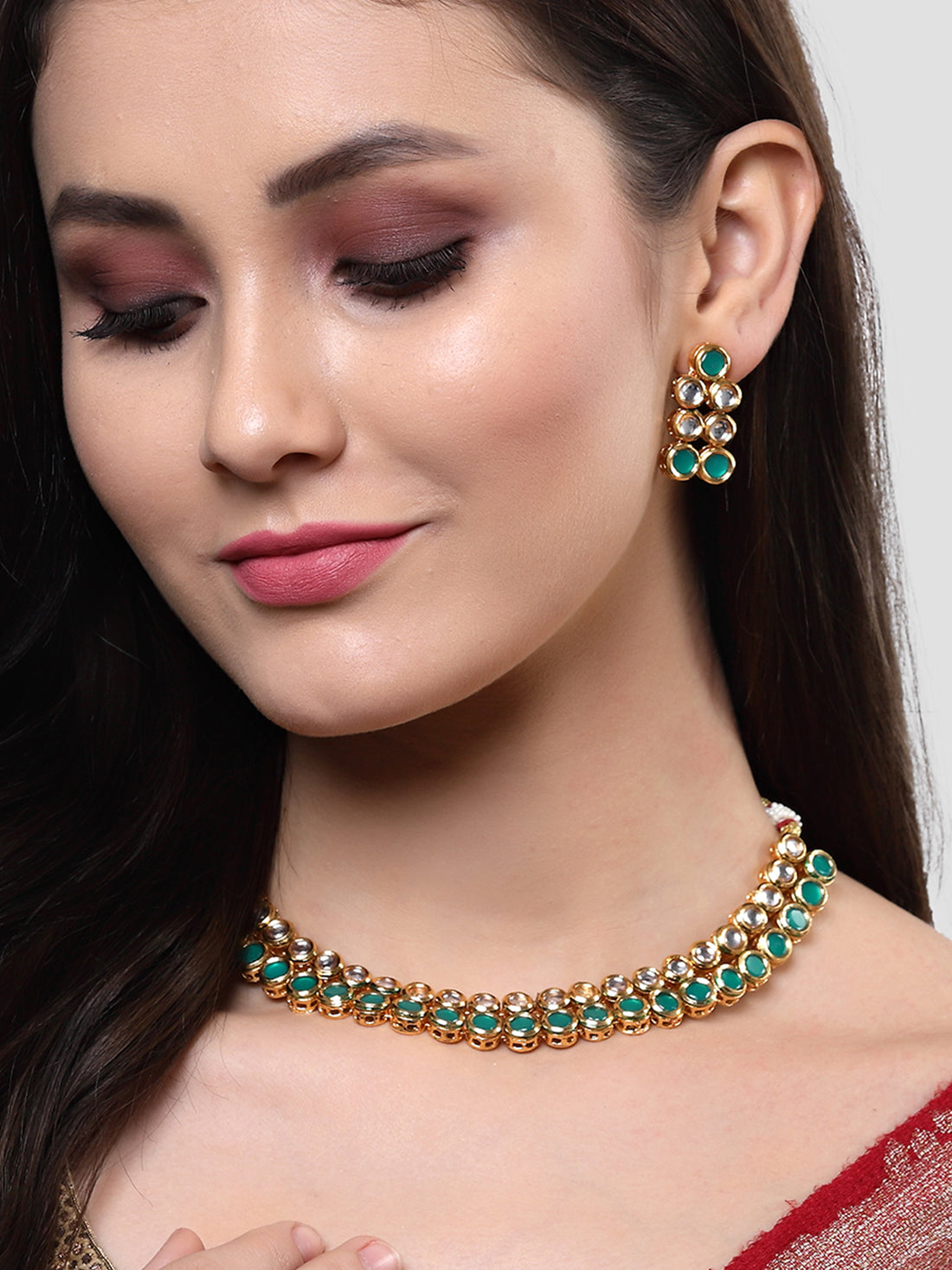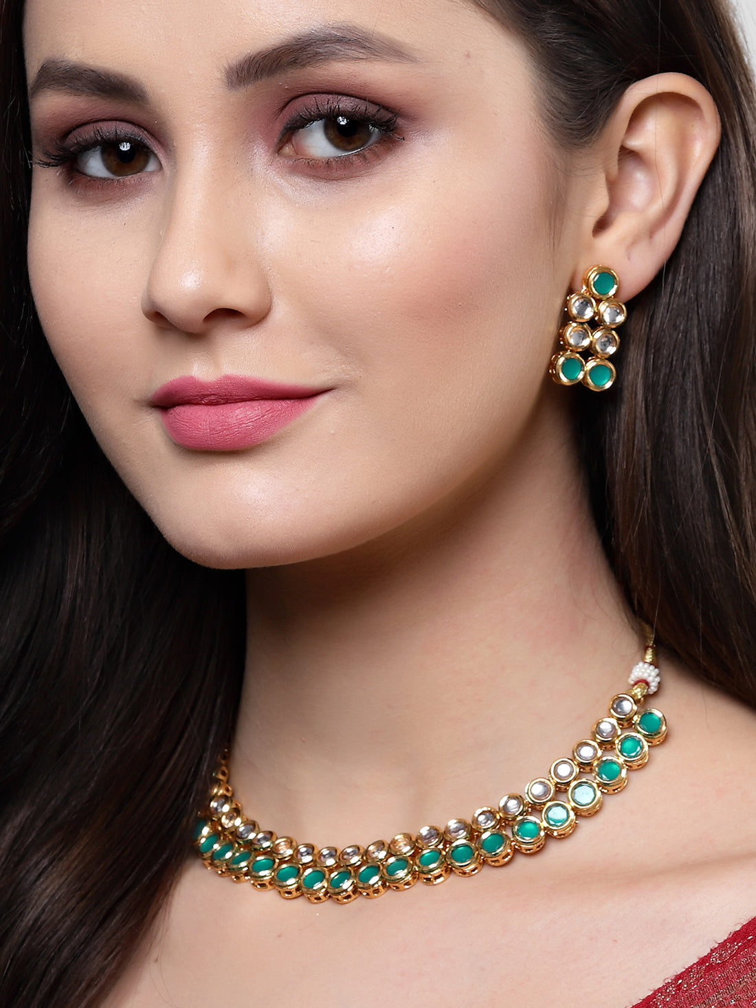 Karatcart Gold Plated Green Tumble Kundan Choker Necklace Setfor Women