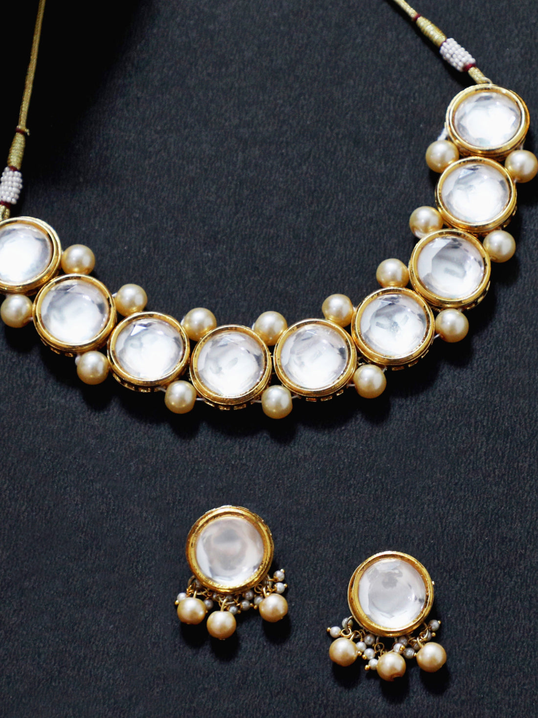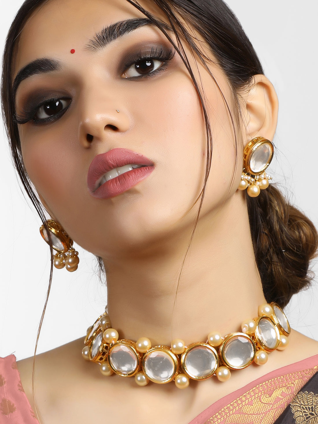 Gold Plated Pearl Beaded Kundan Choker Necklace Set