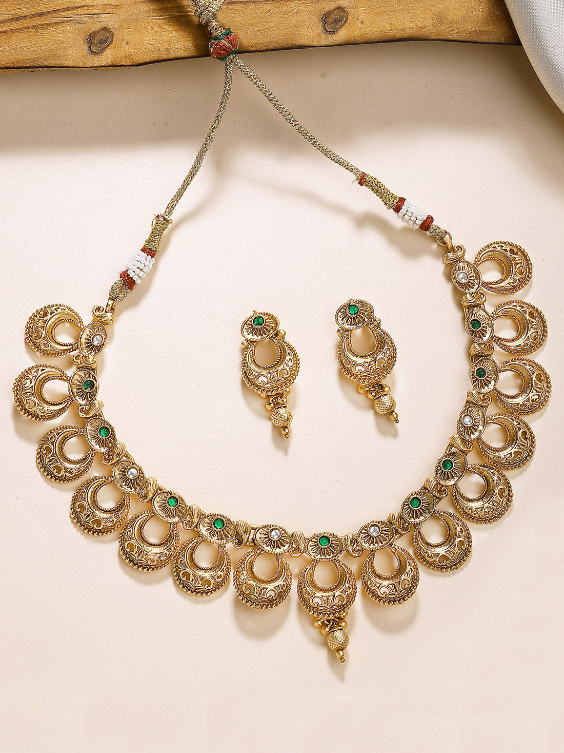 KARATCART Designer Gold-Plated Green Kundan Jewellery Set for Women