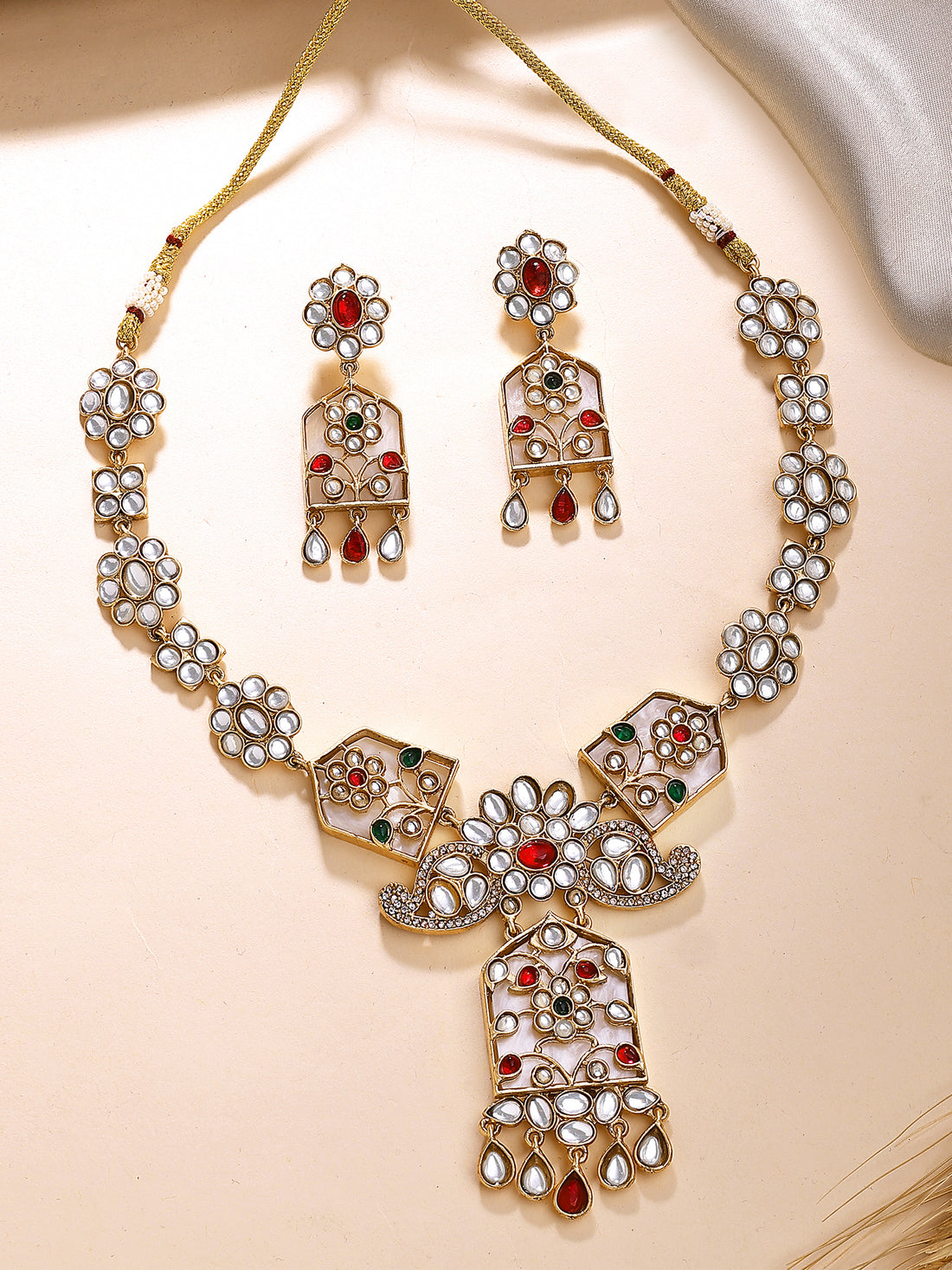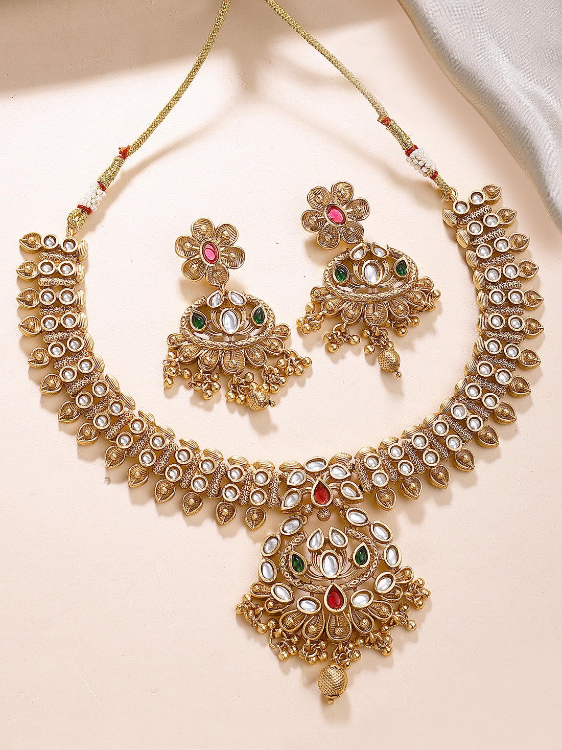 KARATCART Designer Gold-Plated Floral Kundan Jewellery Set for Women