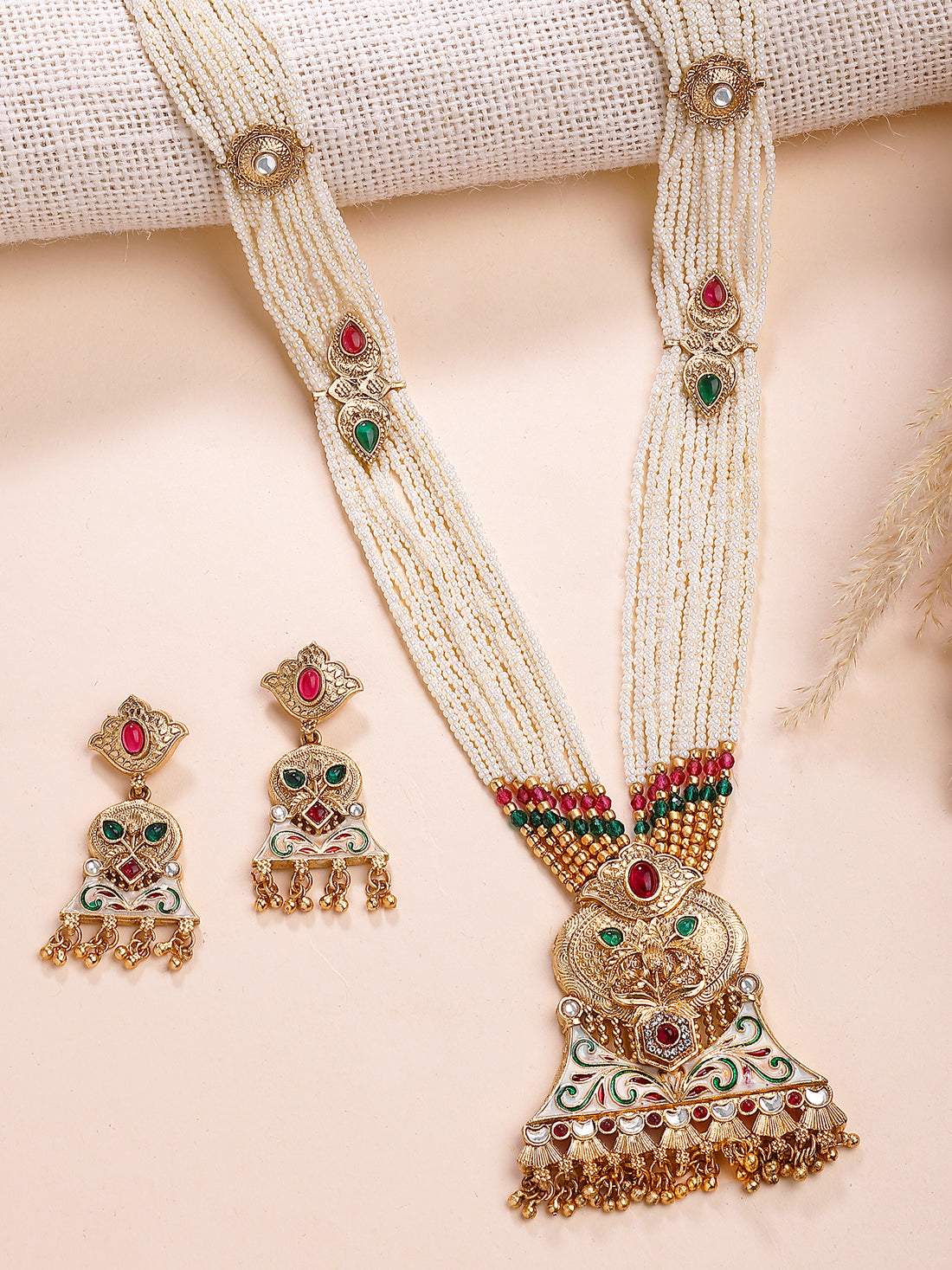 KARATCART Designer Gold-Plated Long Kundan Necklace Jewellery Set for Women