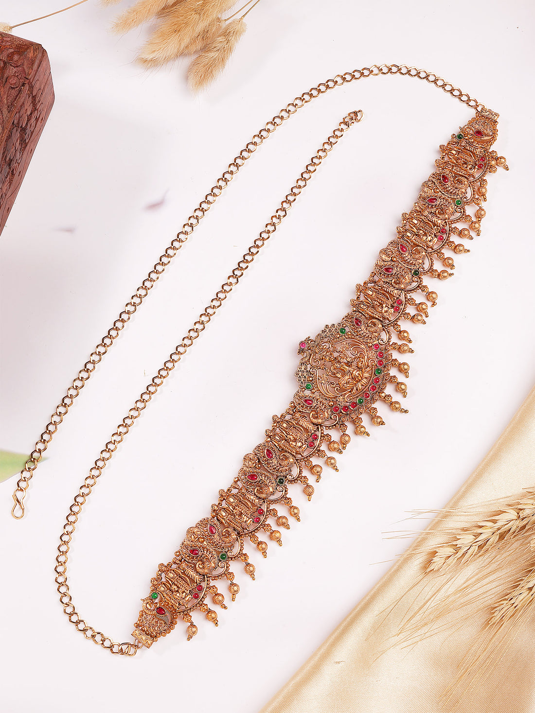Highlights: What’s Included: 1 Kamarbandh Dimensions: Kamarbandh Length: 32.8 cm, Width: 5.5 cm; Chain Length:...