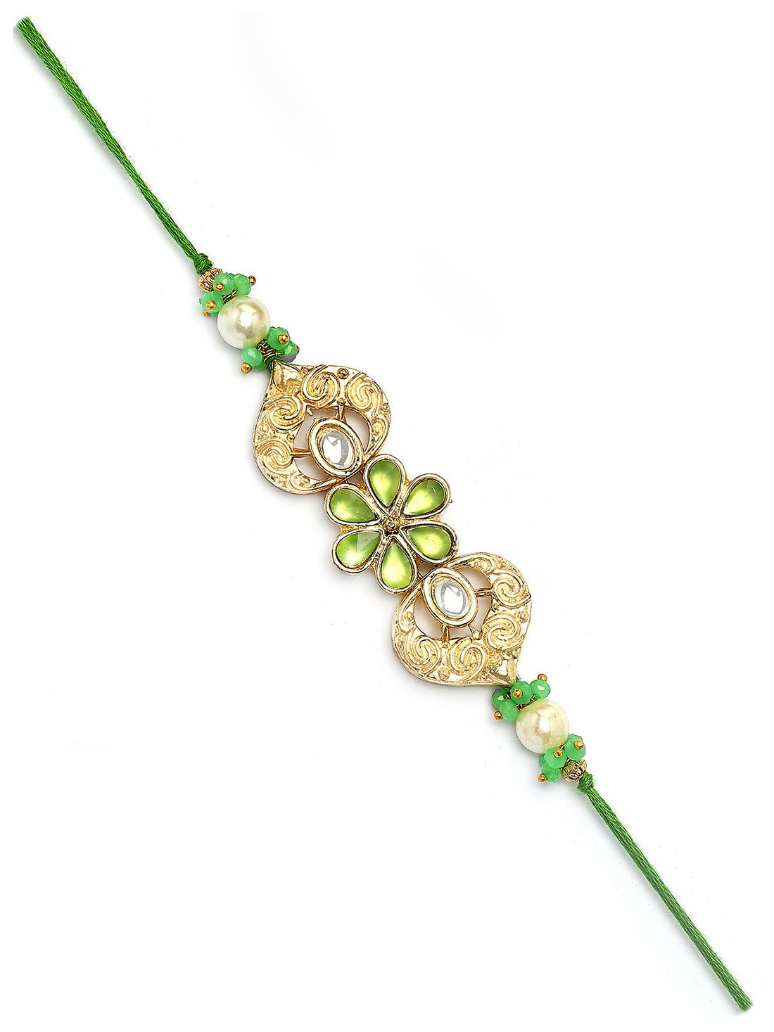 Karatcart Gold Plated Lime Green Crystal Floral Kundan Bhiya Rakhi with Roli & Chawal