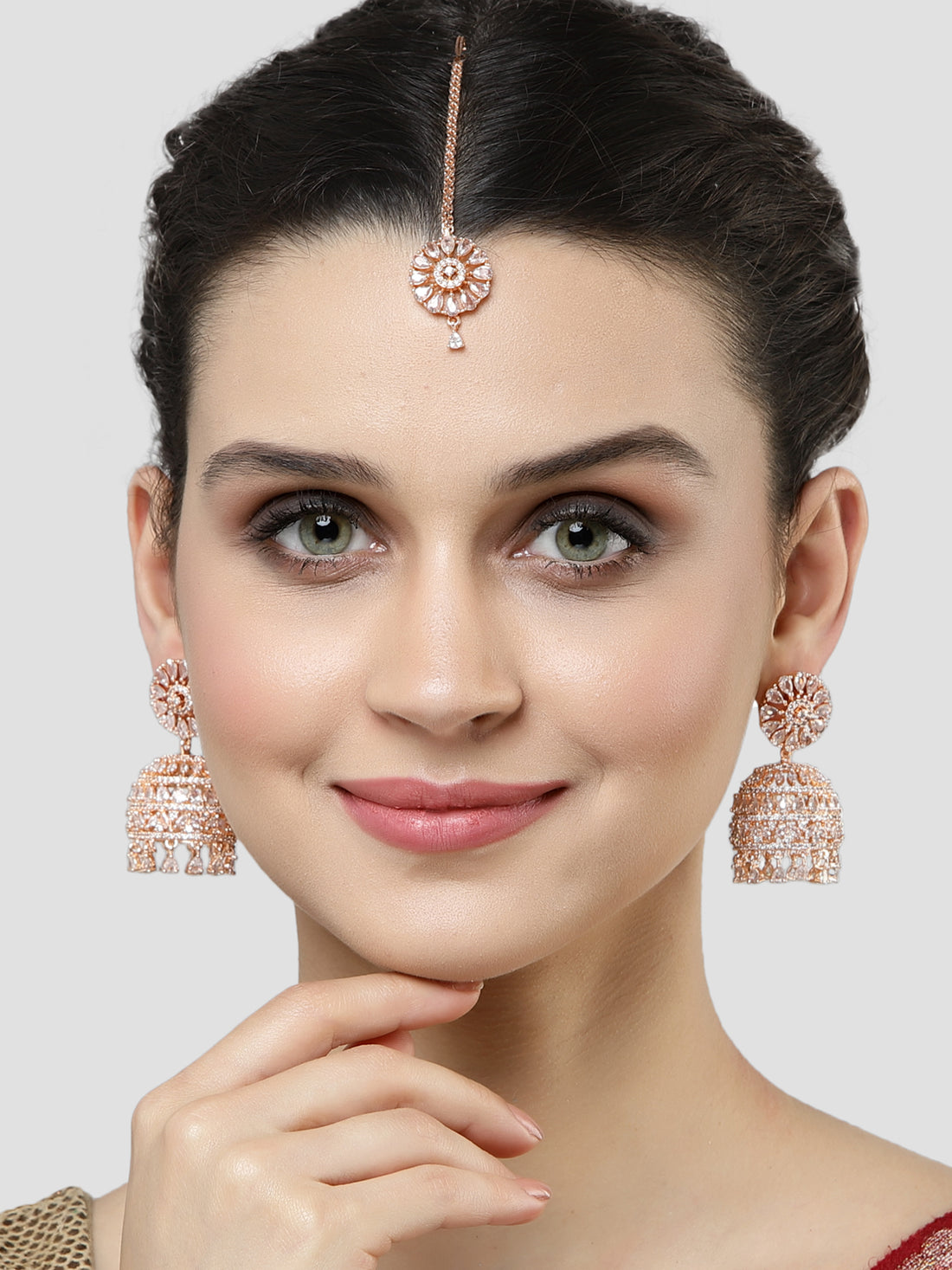 Karatcart Rose Gold Plated White CZ Studded Earrings with Maangtikka for Women