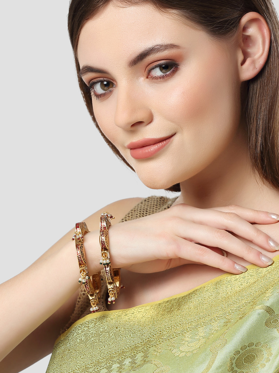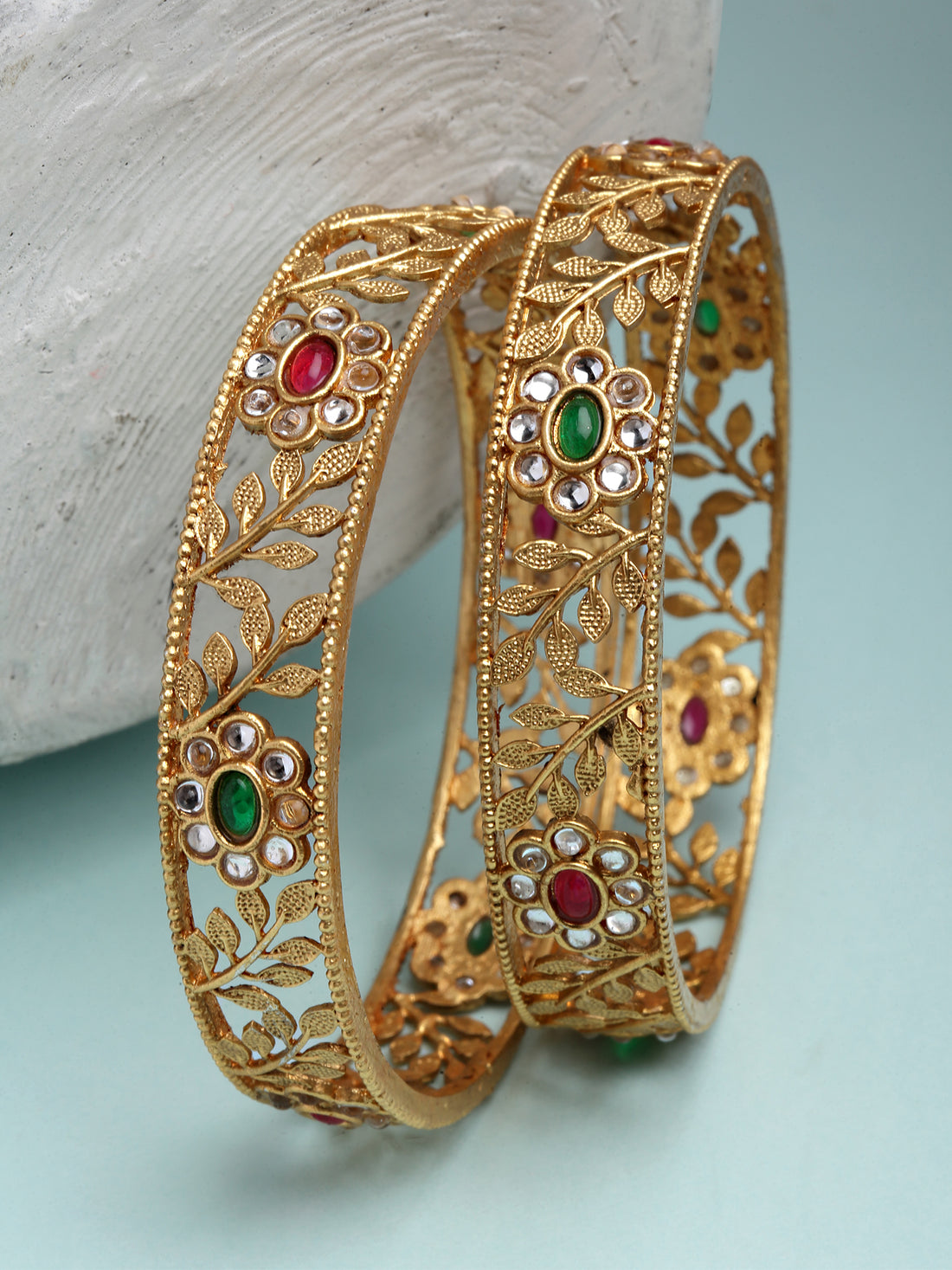 Karatcart Set of 2 Antique Green and Gold Plated Rajwadi Bangles for Women .It's Five...