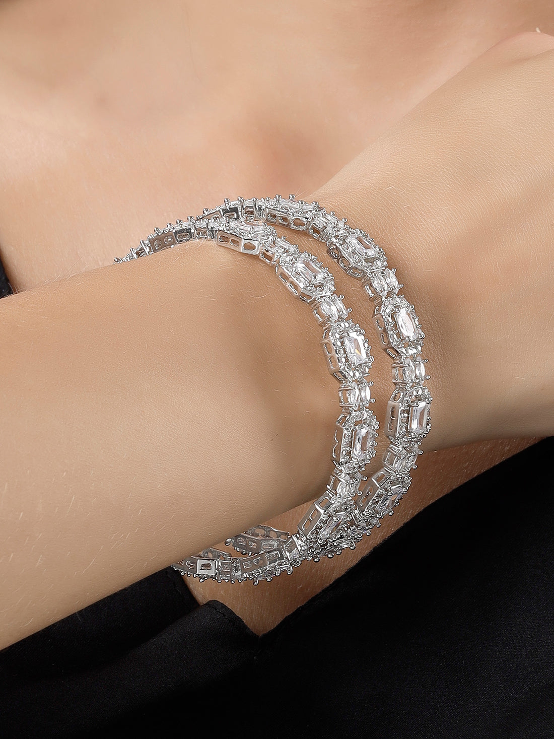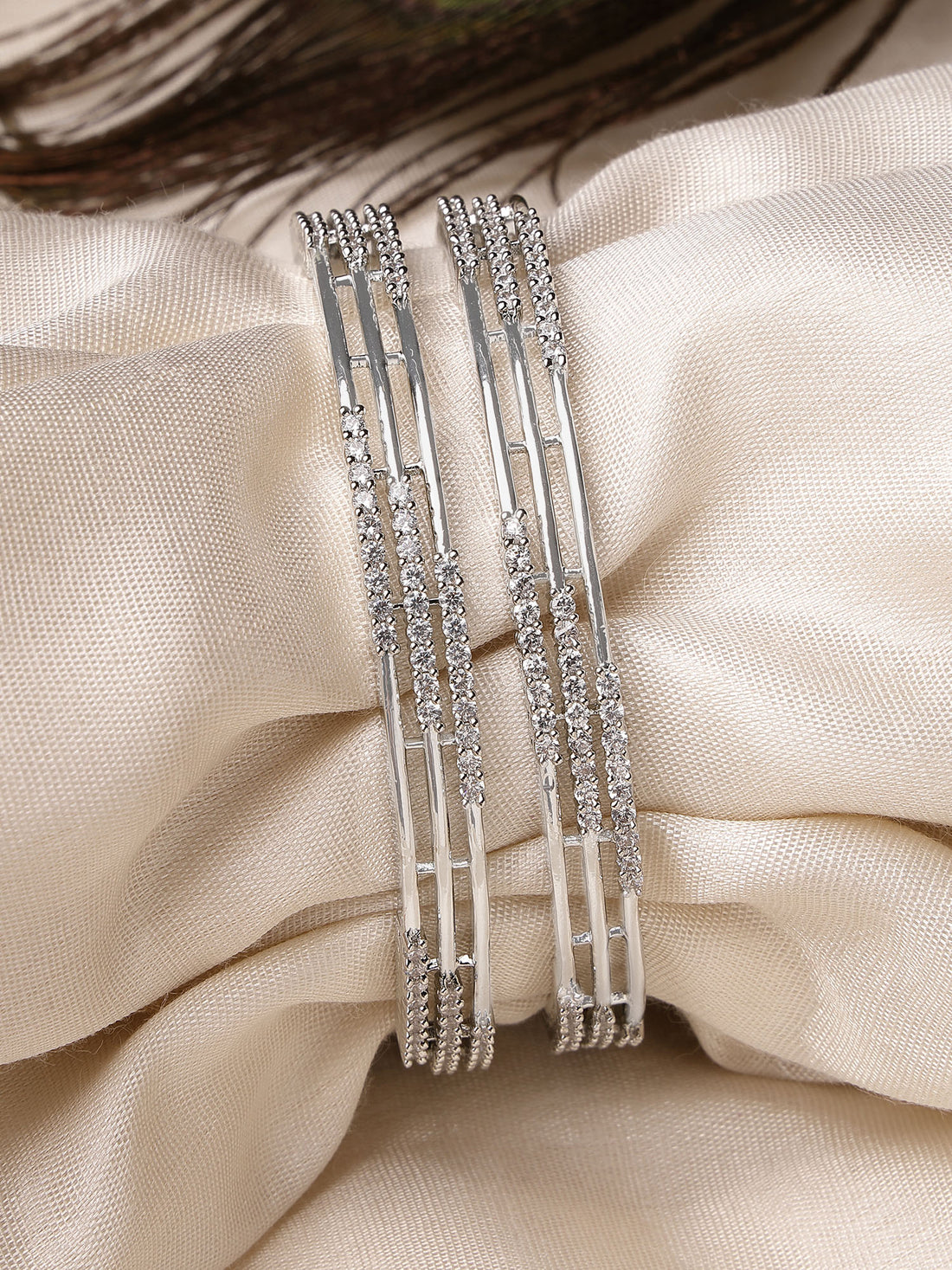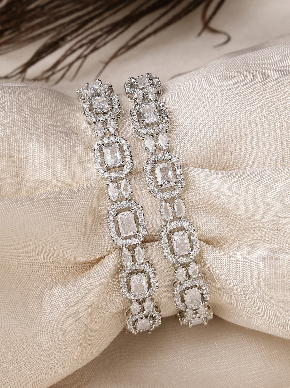 Karatcart Silver Plated Set of 2 American Diamond Studded Bangles for Women