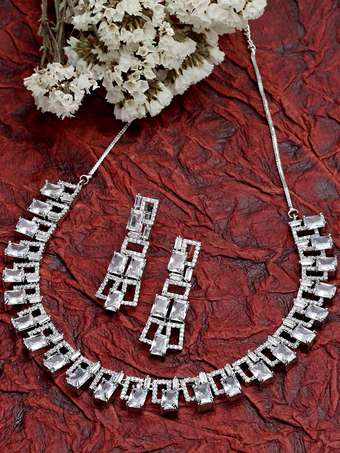 Karatcart Silver Tone Square White Cubic Zirconia Necklace Set for Women