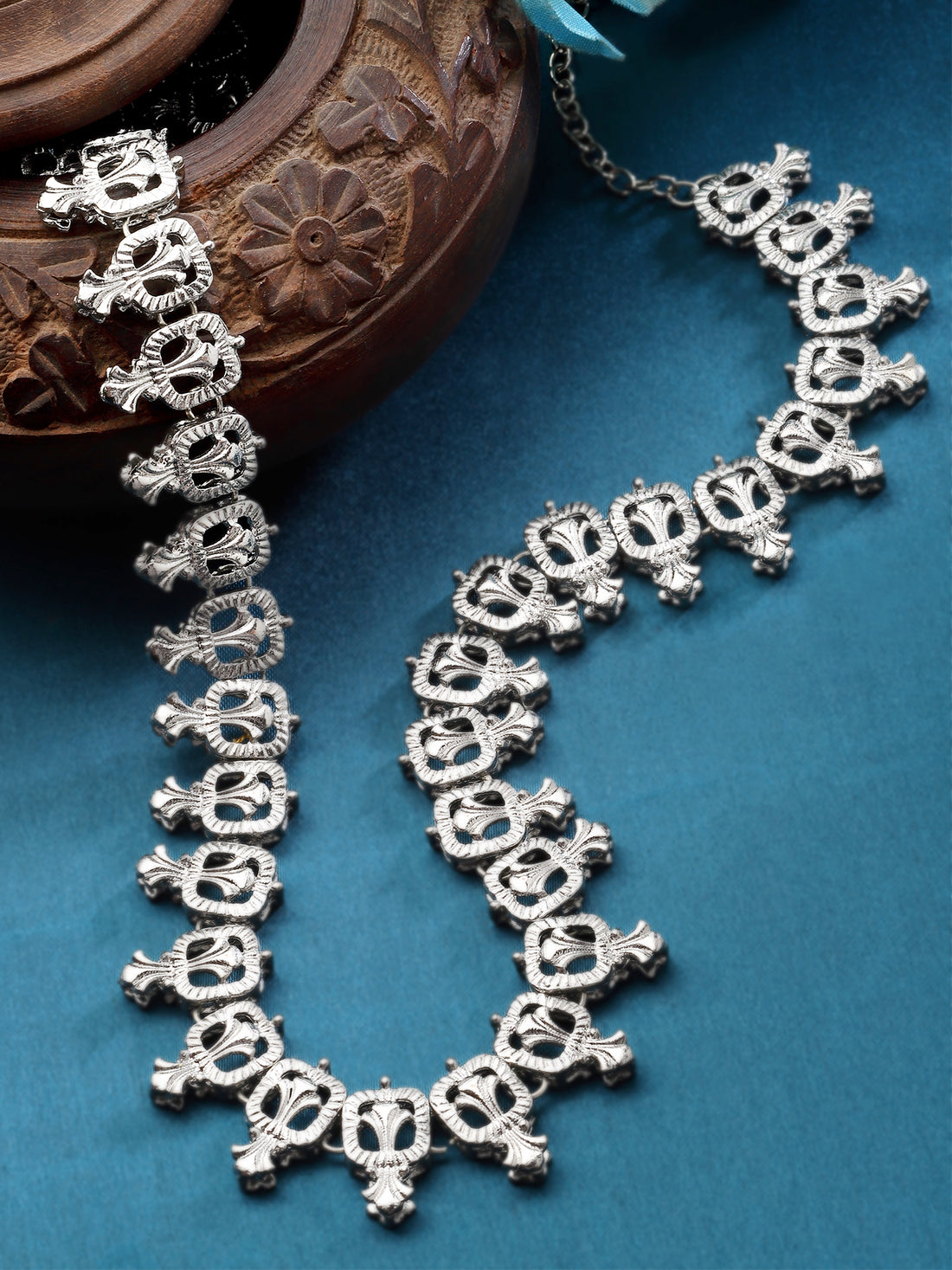 Karatcart Oxidised Silver Plated Kundan Classic Necklace for Women