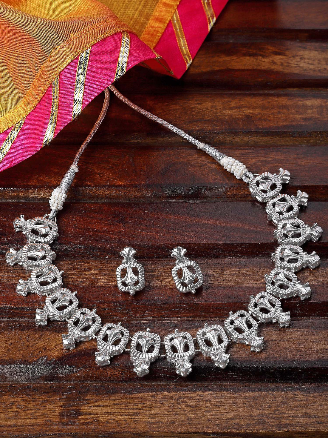 Karatcart Handcrafted Oxidised Silver Necklace with Earrings and Bracelet for Women. Our products are designed...
