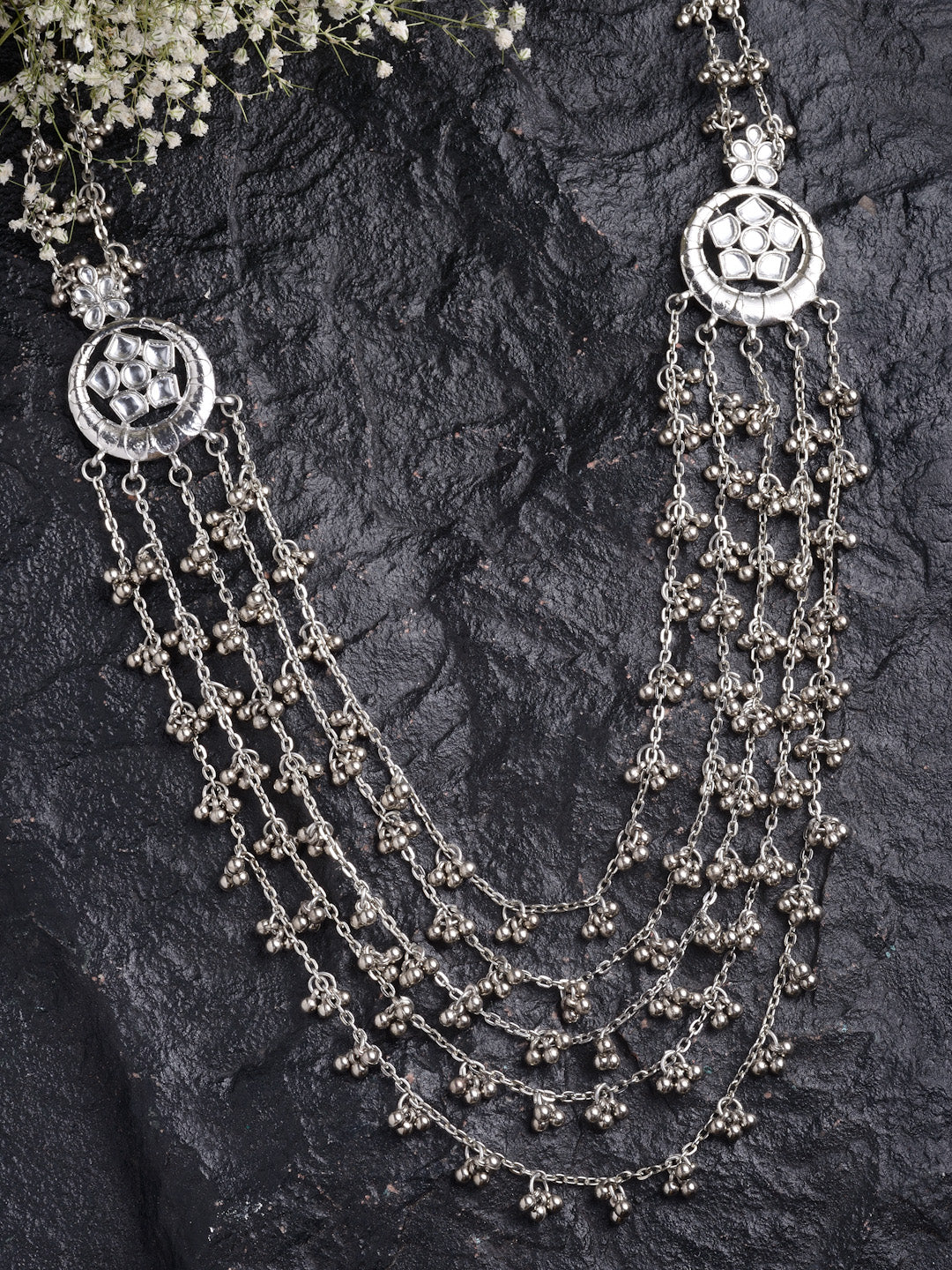 Karatcart Oxidised Silver Multistrand Long Kundan Necklace for Women