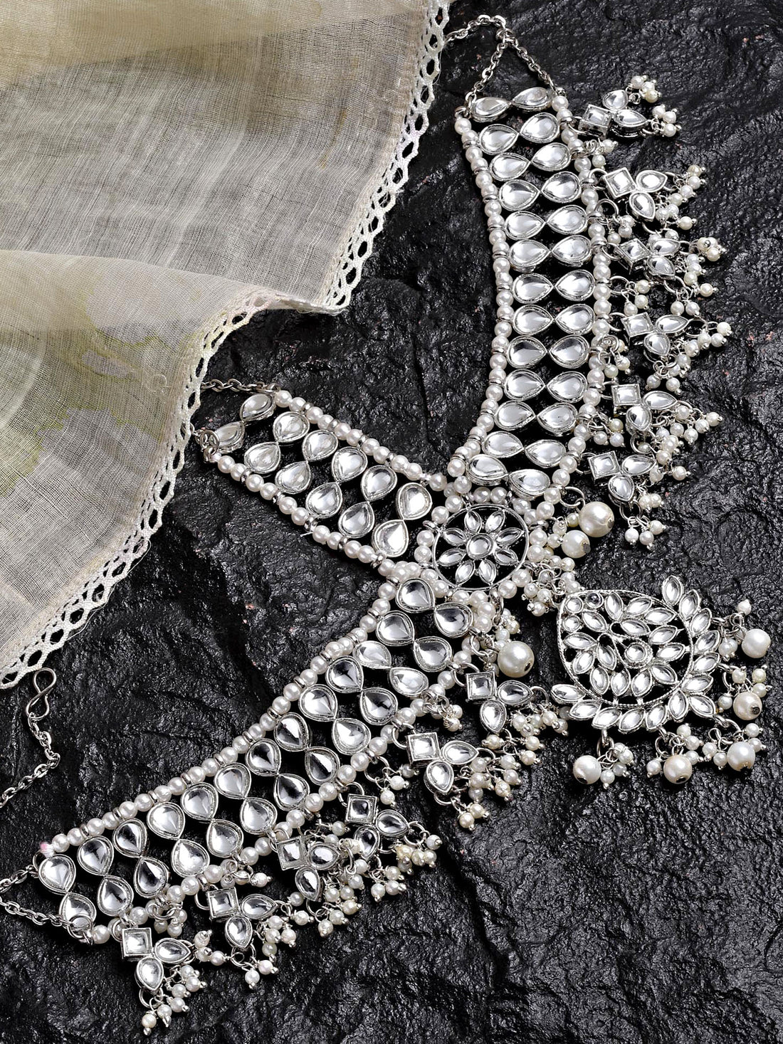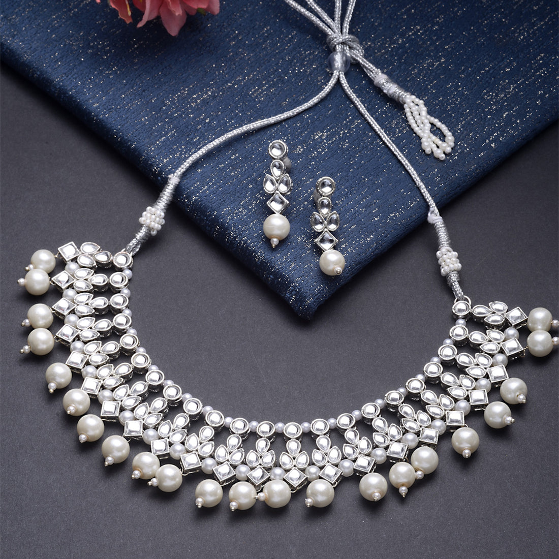 Karatcart Oxidised Silver Pearl Kundan Choker Necklace Setfor Women