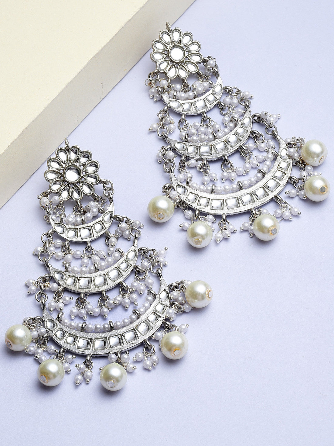Karatcart Oxidised Silver Pearl Kundan Chandbali Earringsfor Women