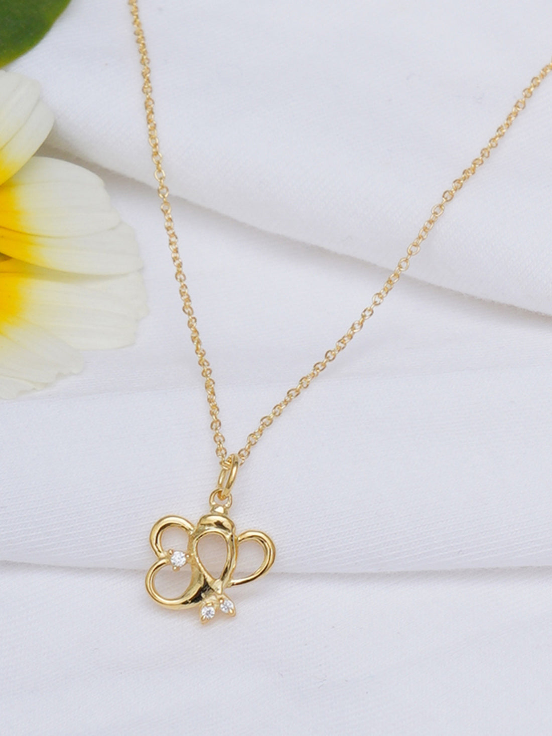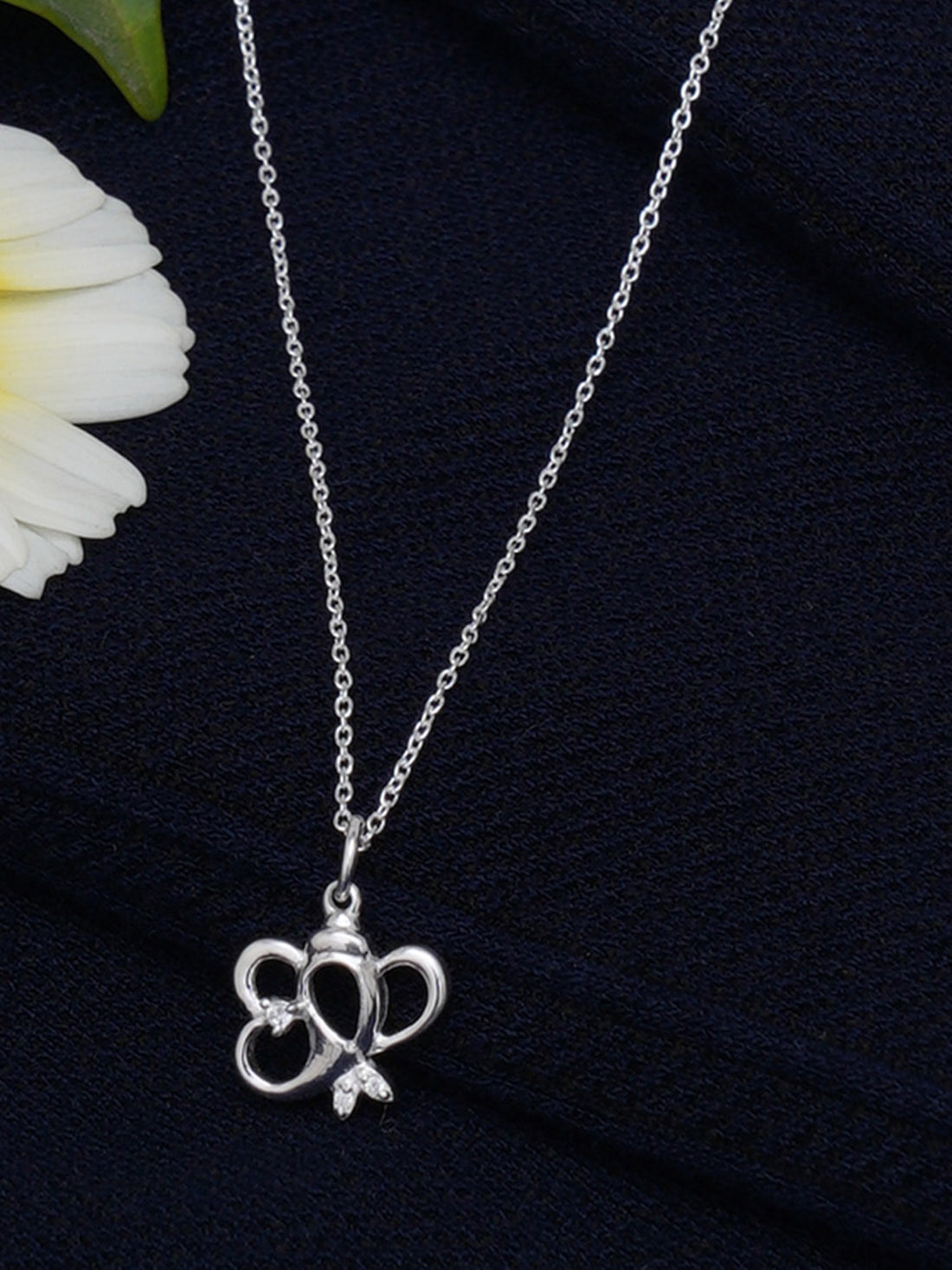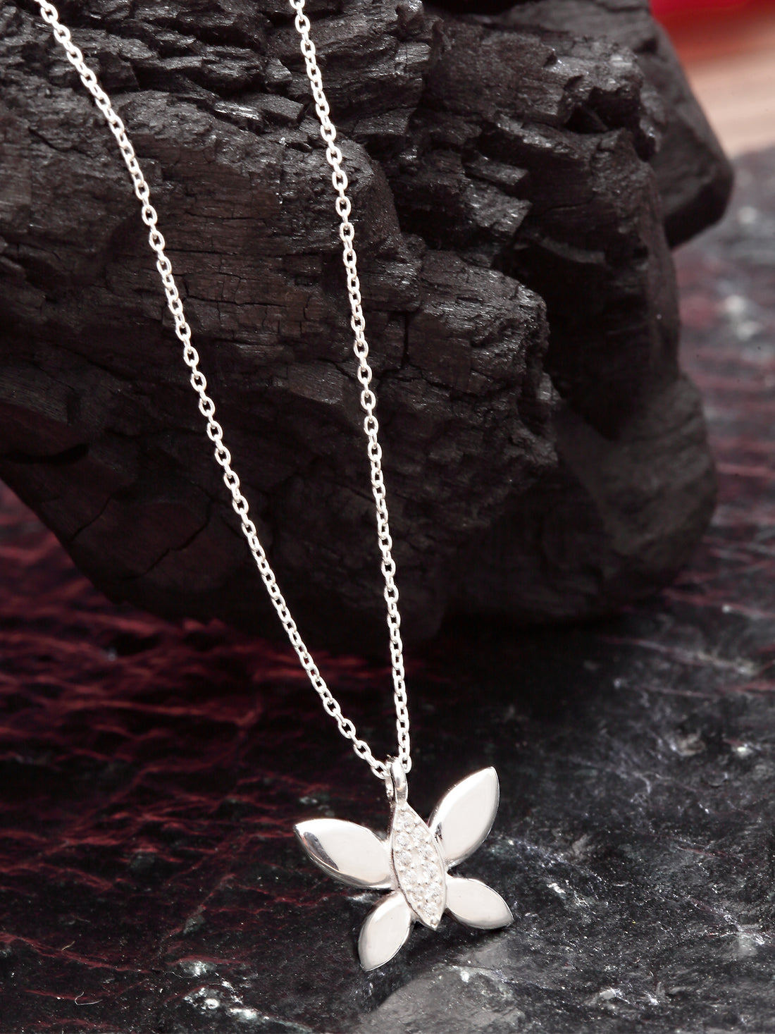 KUNUZ 925 Sterling Silver Butterfly Shape Pendant Studded with CZ for Women