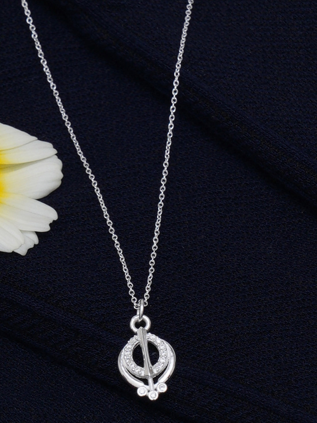 KUNUZ 925 Sterling Silver Ek-Onkar Shape American Diamond Studded Pendent for Women