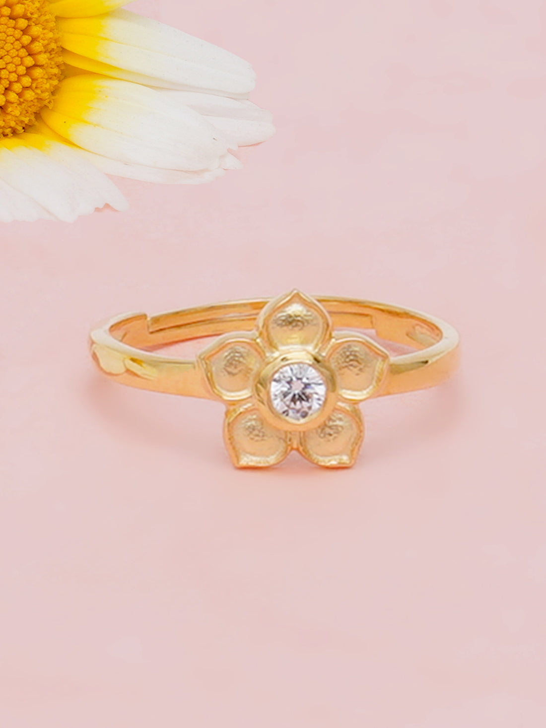 Karatcart Floweret 925 GoldPlated Sterling Silver Adjustable Crystal Adjustable Ring For Women Material: 925 Sterling...