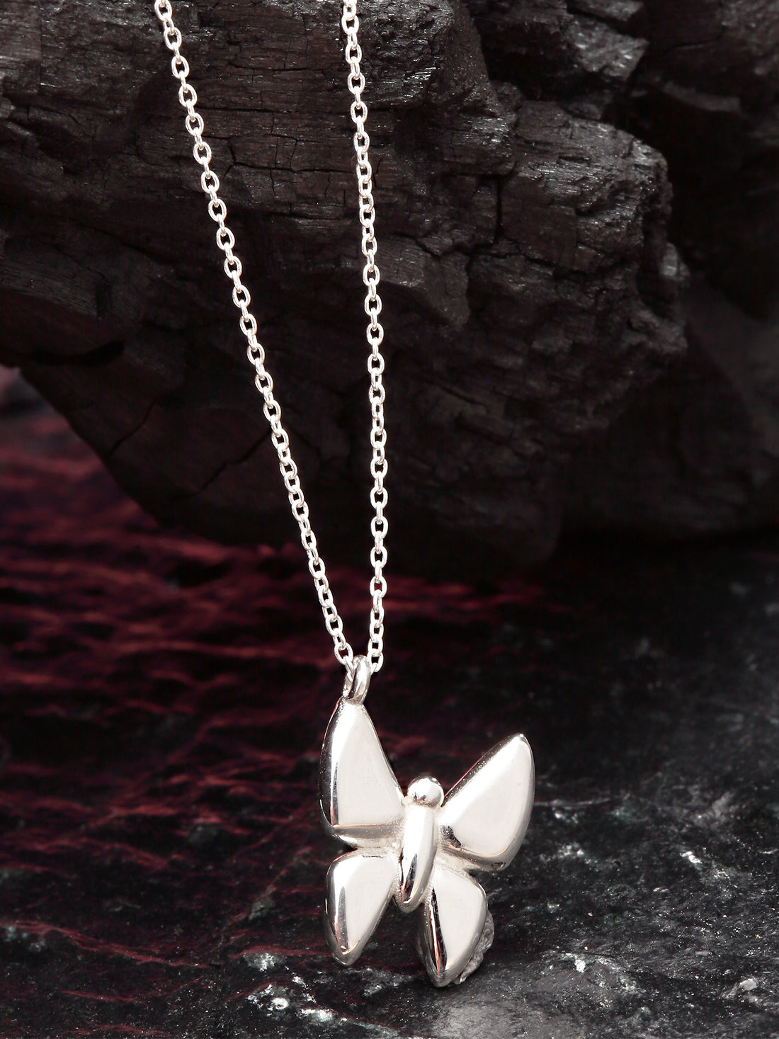KUNUZ 925 Sterling Silver Butterfly Shape Pendant with Chain for Women