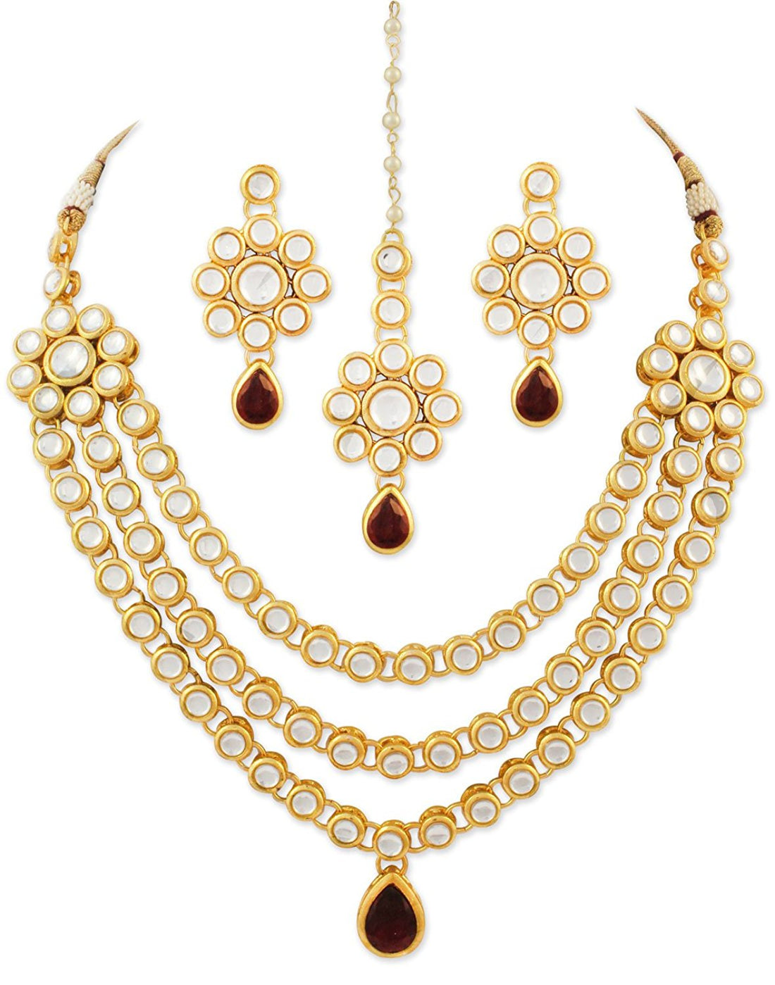 Karatcart Antique Kundan Necklace with Earrings and Maangtikka Necklace Length - 20 inches, Earrings Length -...