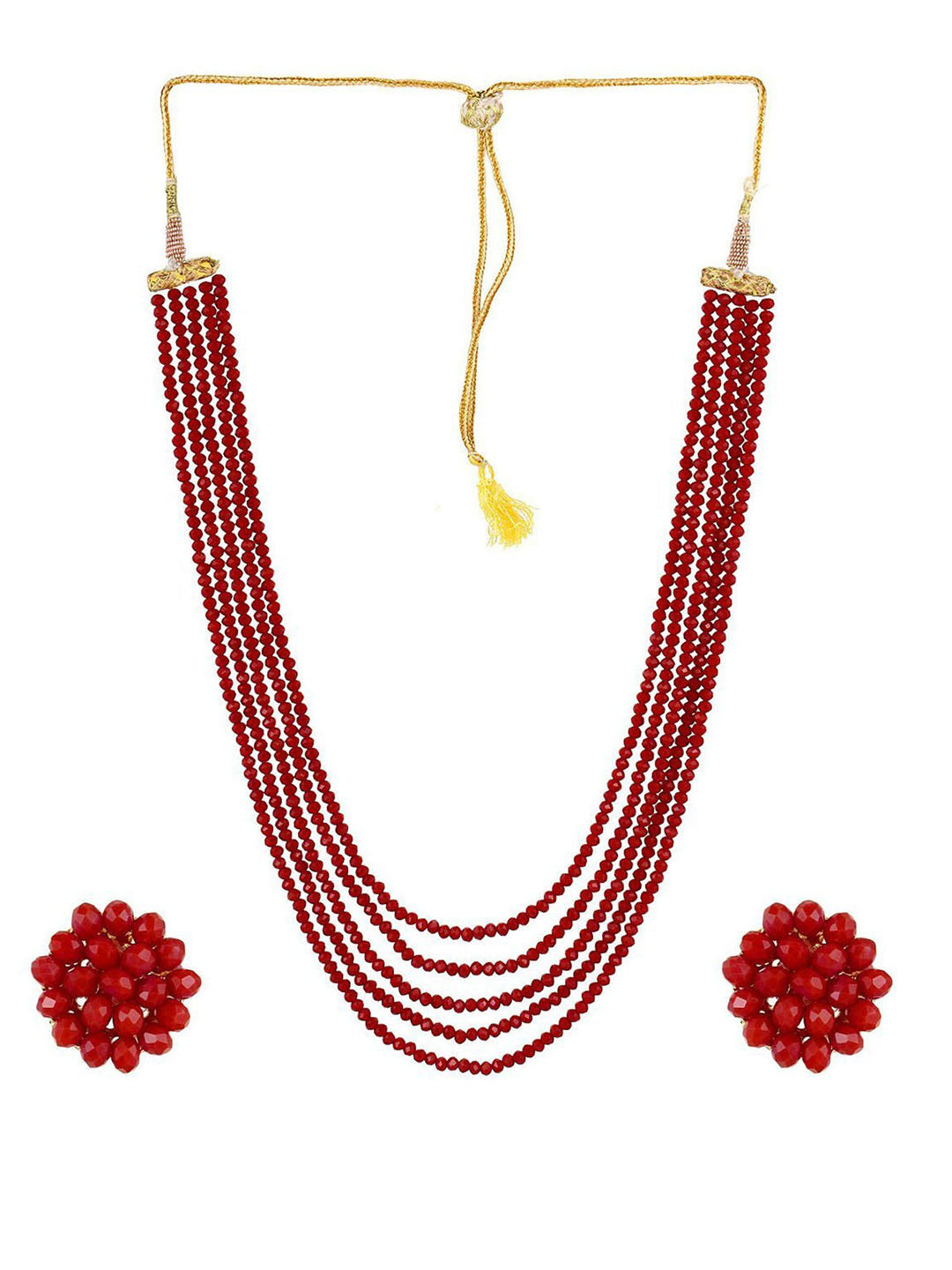 Red Crystal Beads Multi-Strand Necklace Set Necklace Length - 18 Inches, Earrings Length - 1.75...