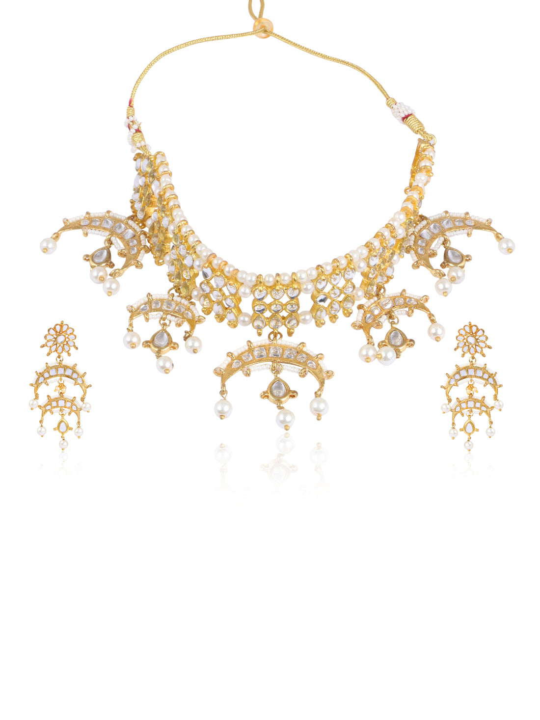 Pearl Gold Plated Traditional Kundan Necklace & Earring Set