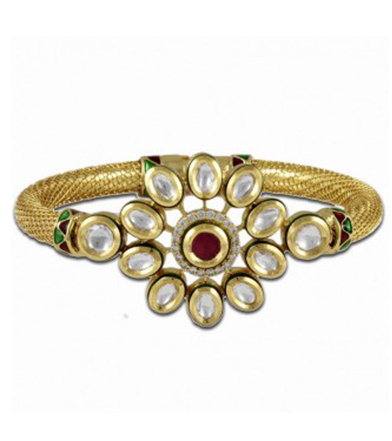 Pearl Embedded Gold Plated Beaded Kundan Hairband. Dazzling Floral Shaped Gold Plated Glossy Finish Kundan Hairband for...