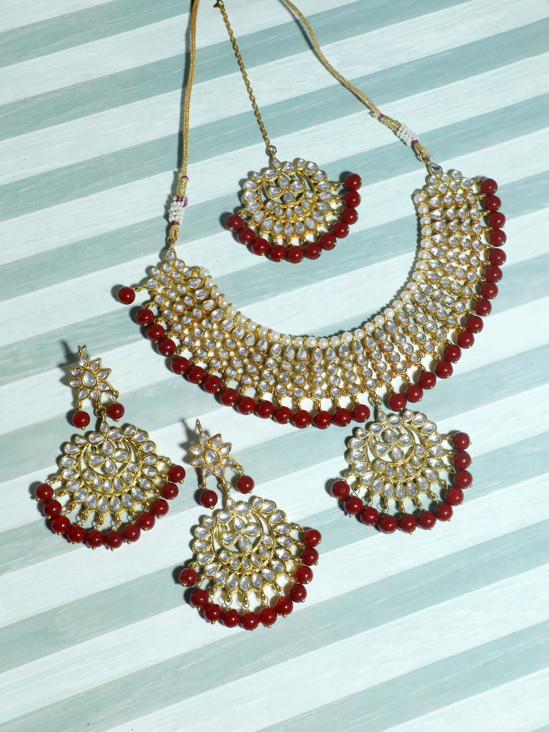 Karatcart 22K GoldPlated Partywear Traditional Kundan Red Choker Jewellery Set