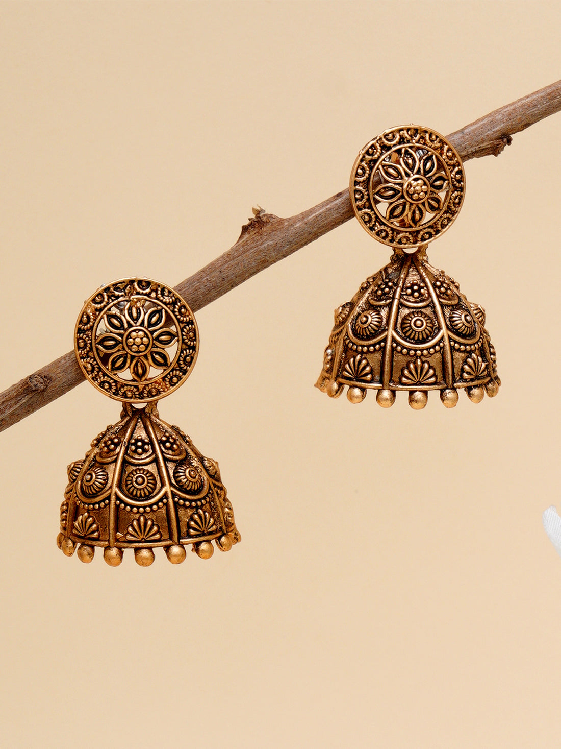Karatcart Antique Gold Plated Floral Jhumki Earrings for Women