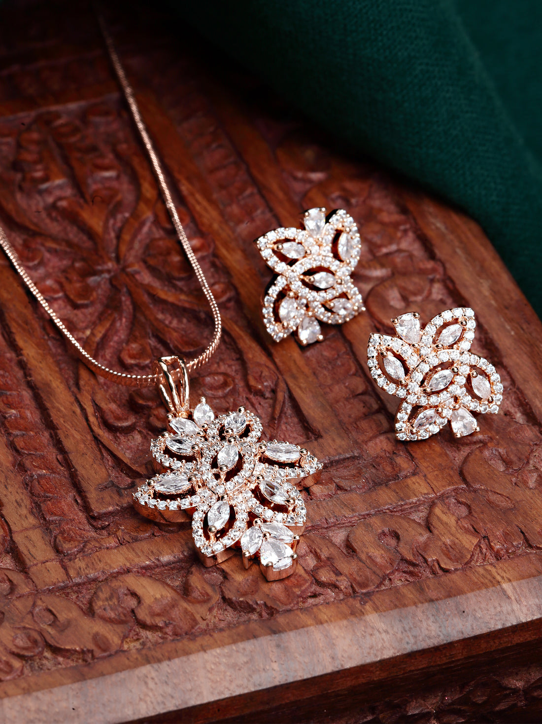 Karatcart Floral Rose Gold Plated Cubic Zirconia Studded Pendant Set for Women